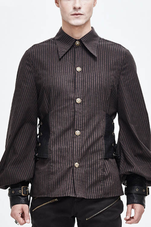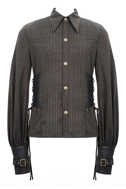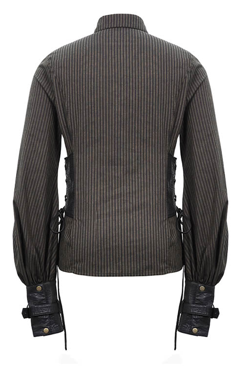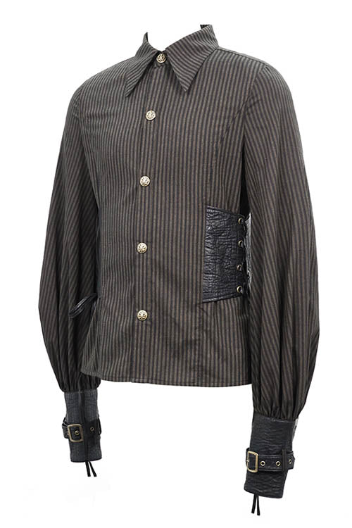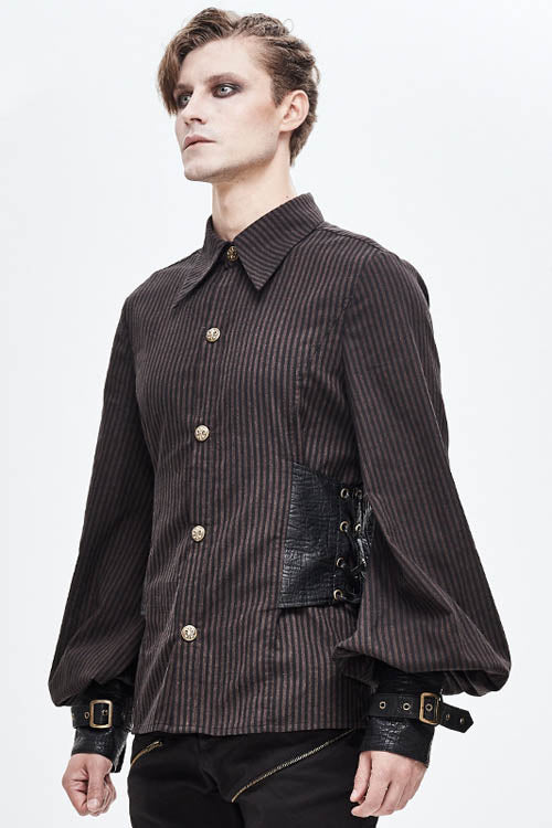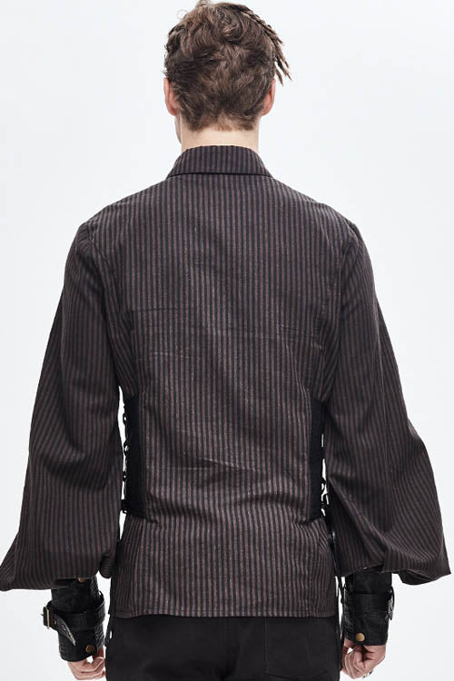 メイン素材はブラックとコーヒーのストライプ素材で作られており、ウエストヒットレザー素材は仮ベルトで、締め具合を調整できます。袖ヒットレザー素材、スリーブループは調整でき、すべての金属はブロンズと一致しています。フロント中央のボタンは柄スナップボタンです。