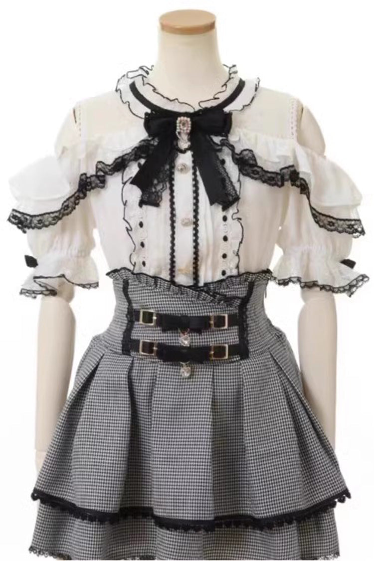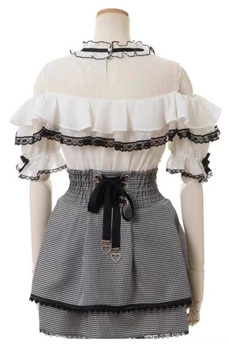 | サイズ (CM) | スカートウエスト | スカート丈 | ブラウスバスト | ブラウスの袖丈 | ブラウス肩幅 | ブラウス丈 |