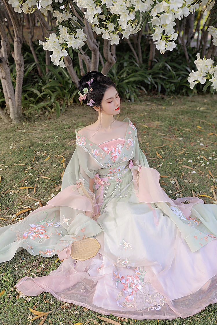 含まれるもの:ドレス*1 + 裏地*1 + チュニック*1 + ショール*1 + ベルト*1 + パールペンダント*1(アクセサリーは含まれていません。)