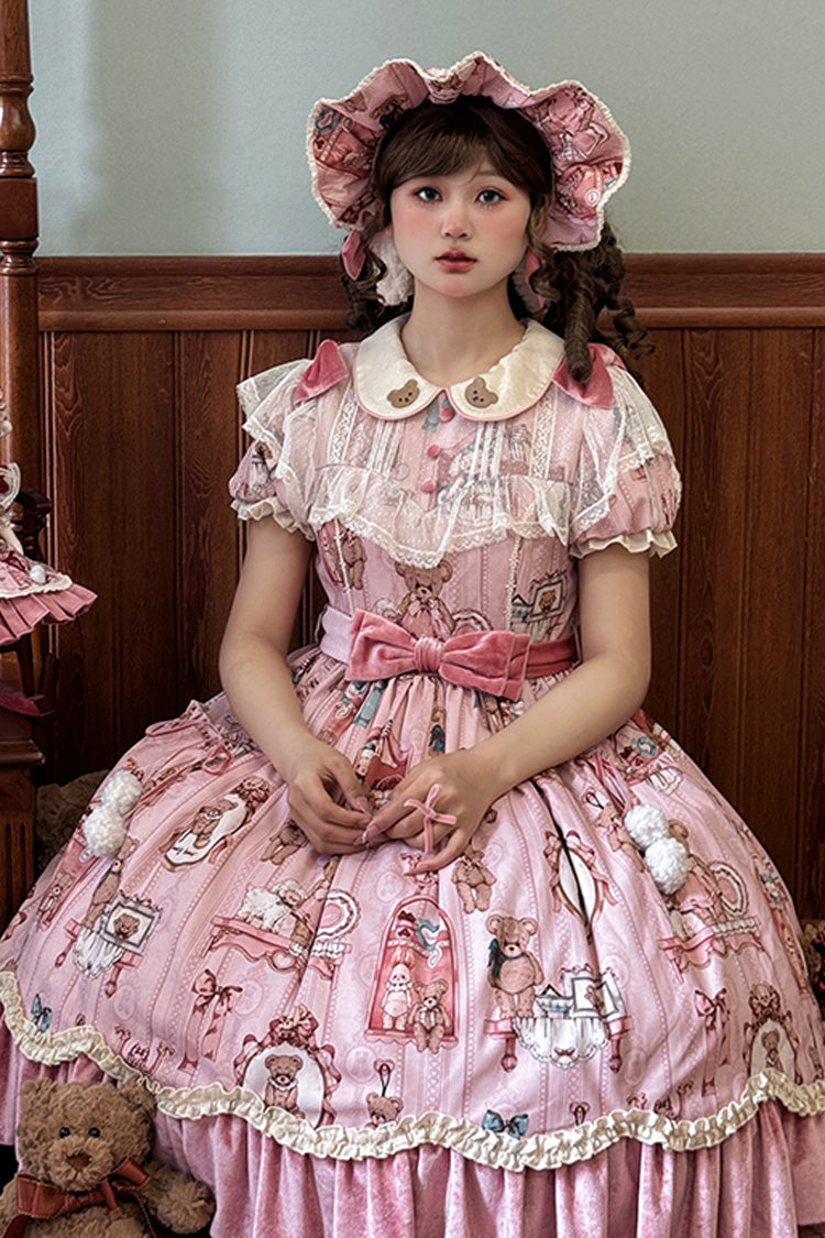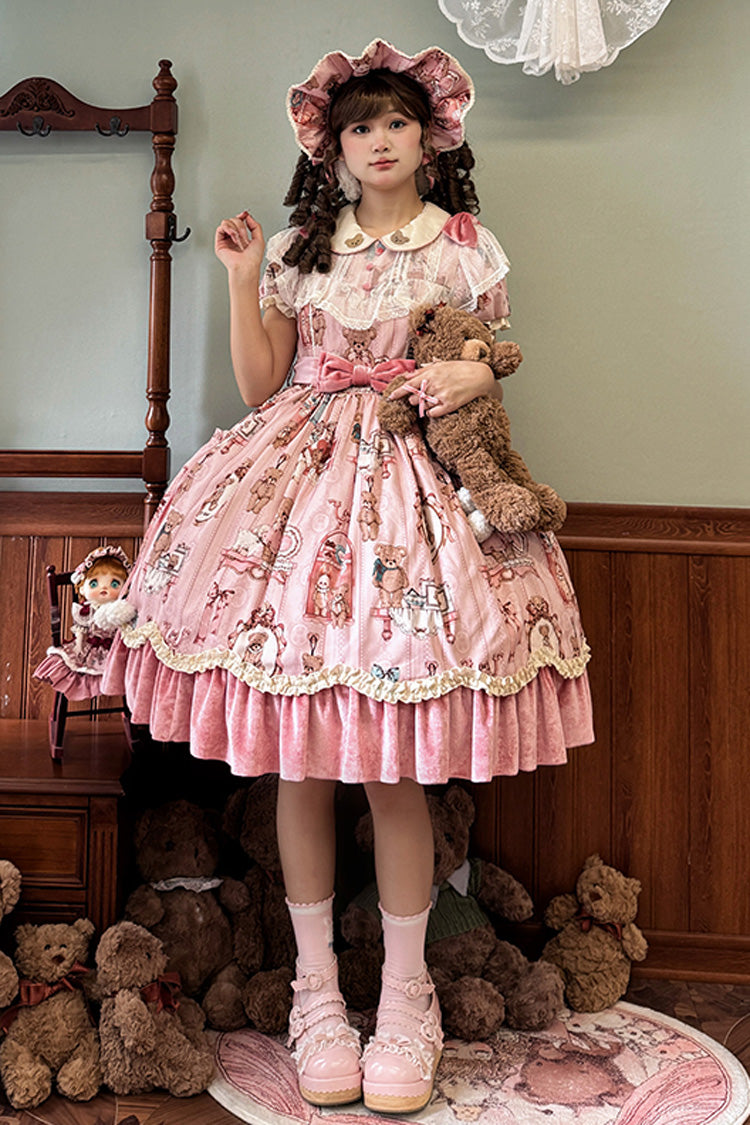 生地:プリント生地 + ベルベット + コットン裏地 + 糸 + スノーフレークサテン