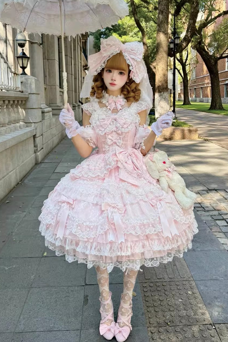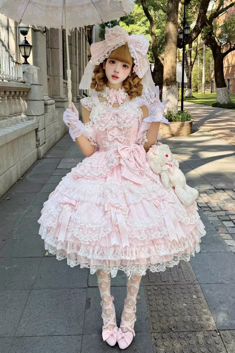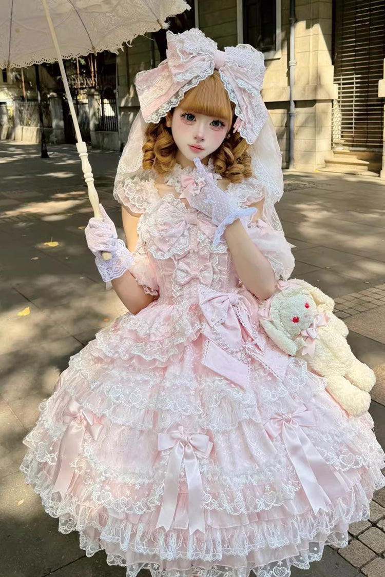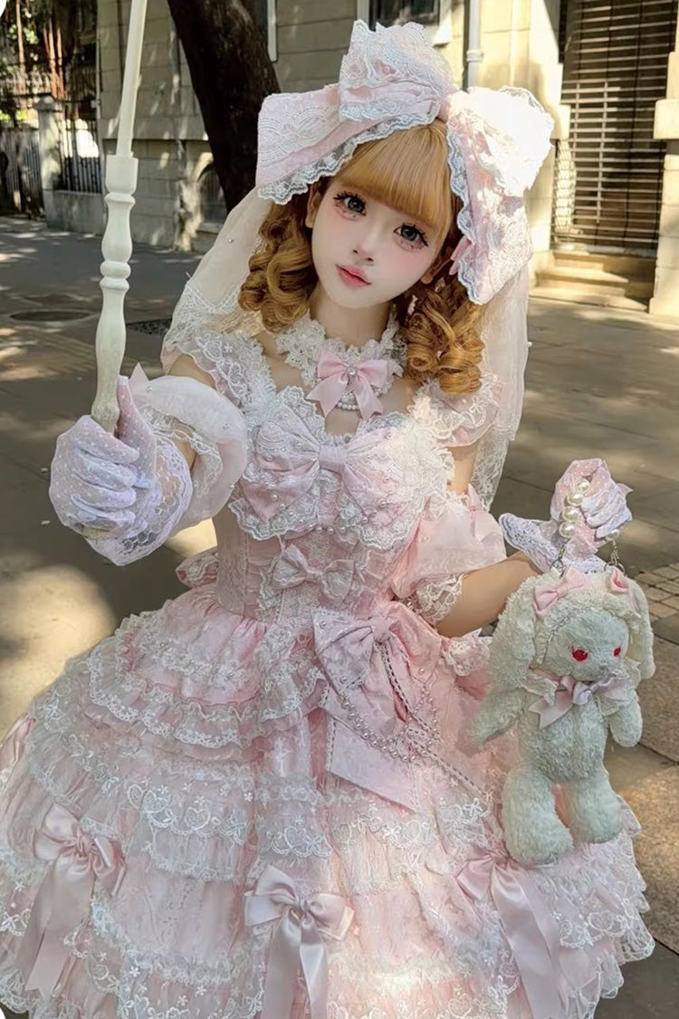 Feature: Multi-Layered, Ruffled, Bow, Lace, Pearl-Decorated