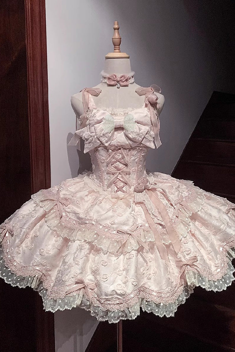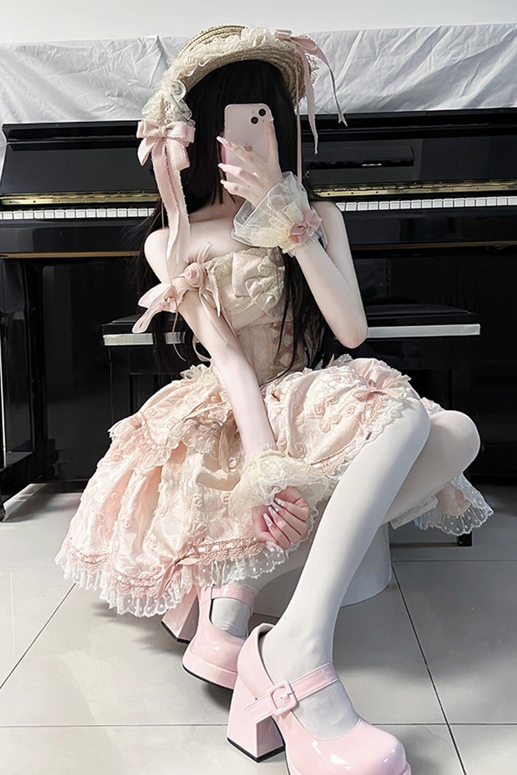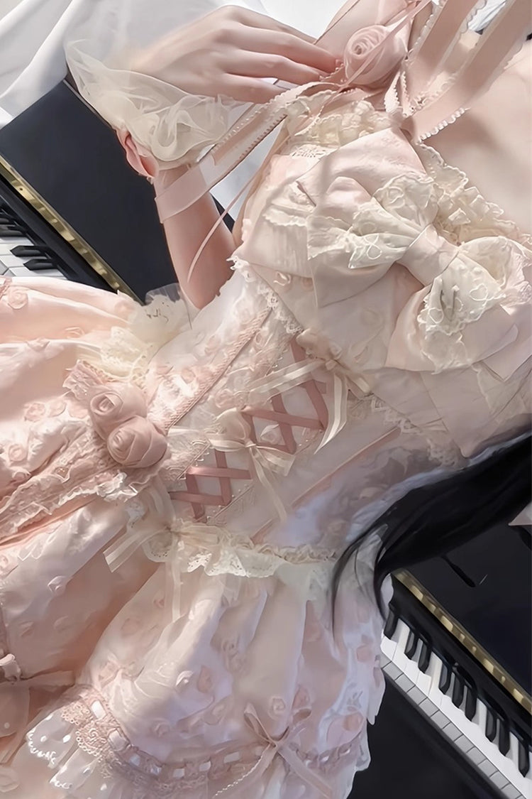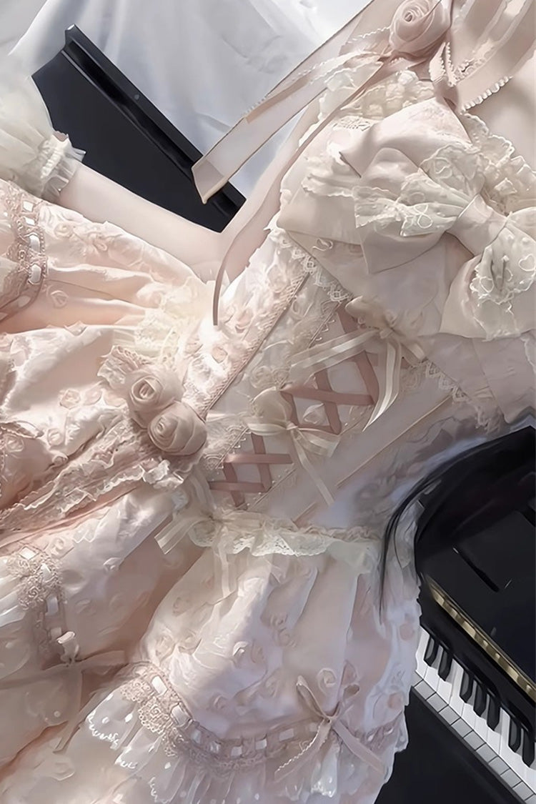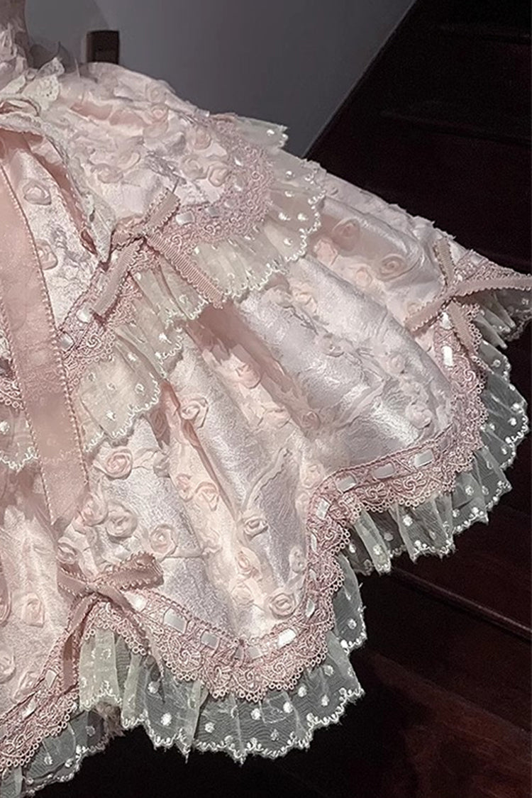 特徴: ダブルレイヤー, フリル, 刺繍, リボン結び, レース
