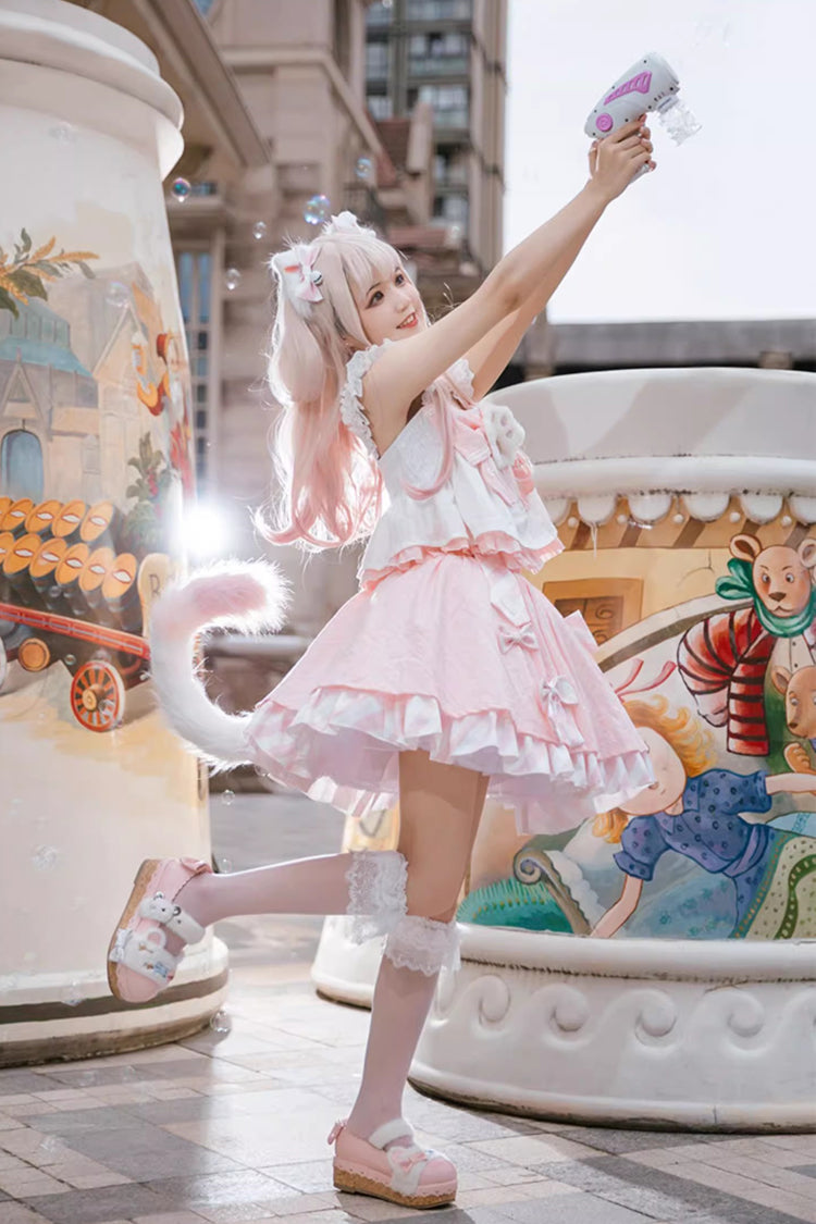 特徴:プリント、フリル、蝶結び