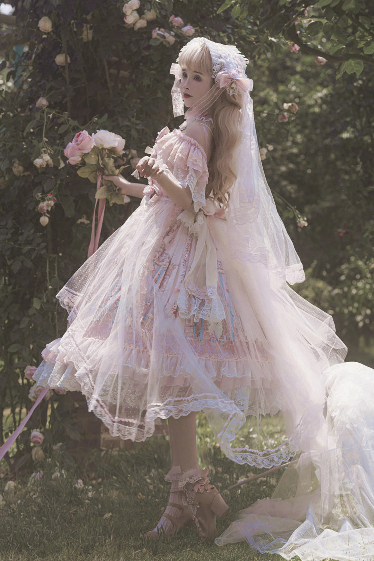 含める: ドレス + リボン飾り + 薄手のオーバーレイ + トレーン + 大きなバックリボン + 取り外し可能なフラッタースリーブ + ベール + 花のかぶと
