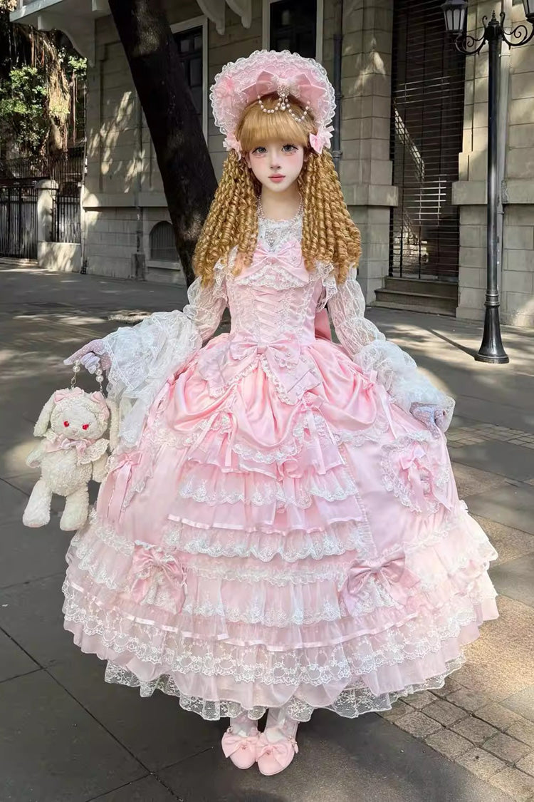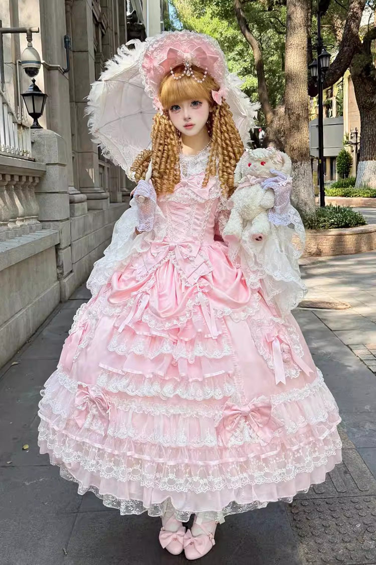 特徴: 多層、フリル、花嫁、前開き、リボン、レース、レースアップ
