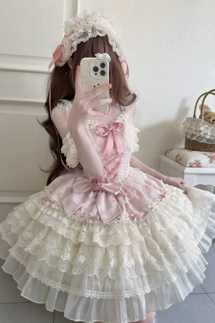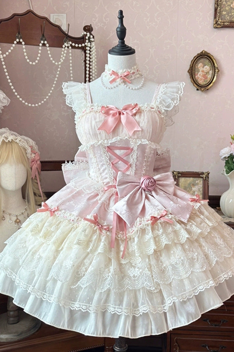 特徴: マルチレイヤー、ボウノット、レース、レースアップ、パール