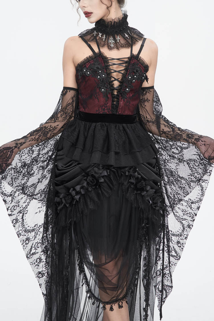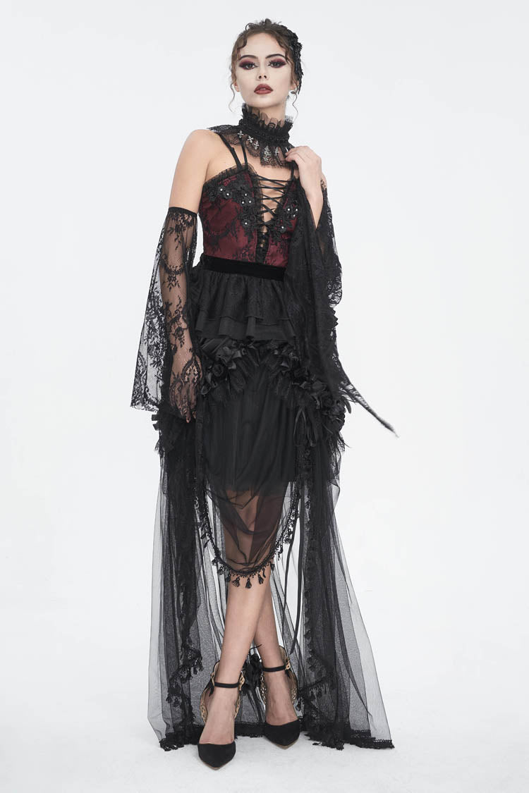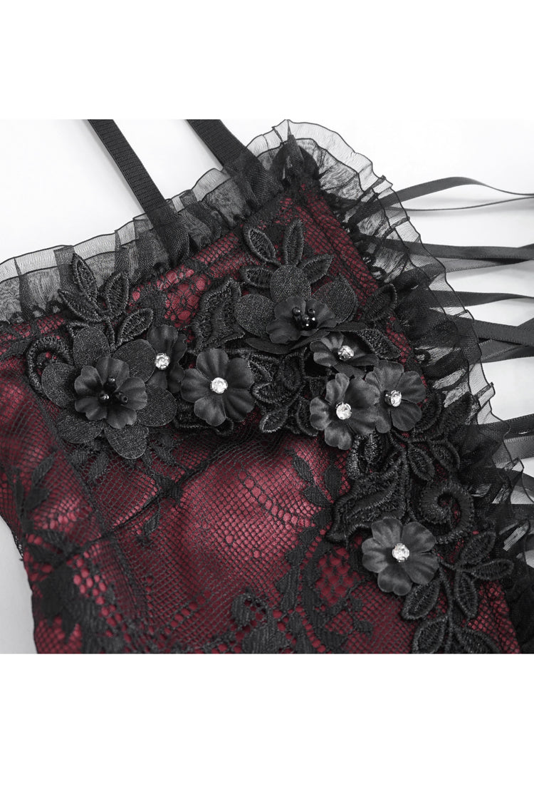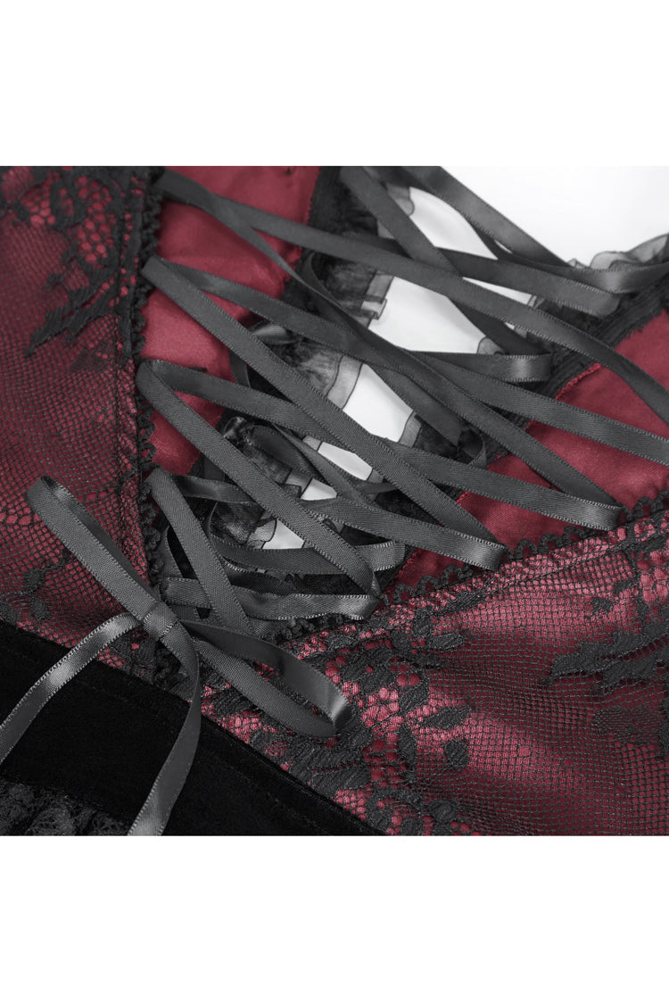 特徴:刺繍、ステッチ、レース、レースアップ