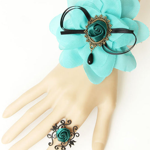 レトロ パレス シフォン フラワー 女性 ブレスレット リング 1 チェーン