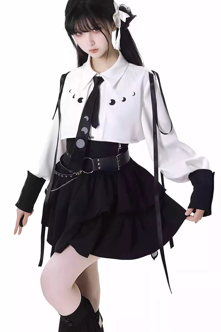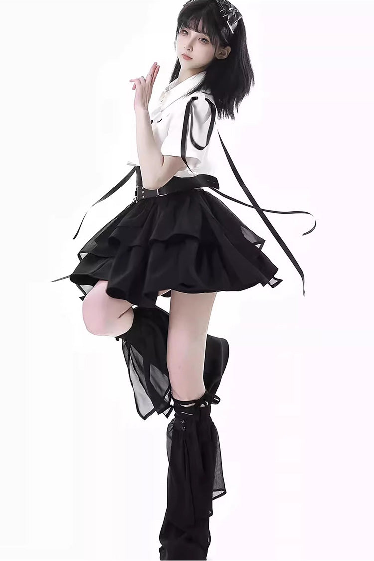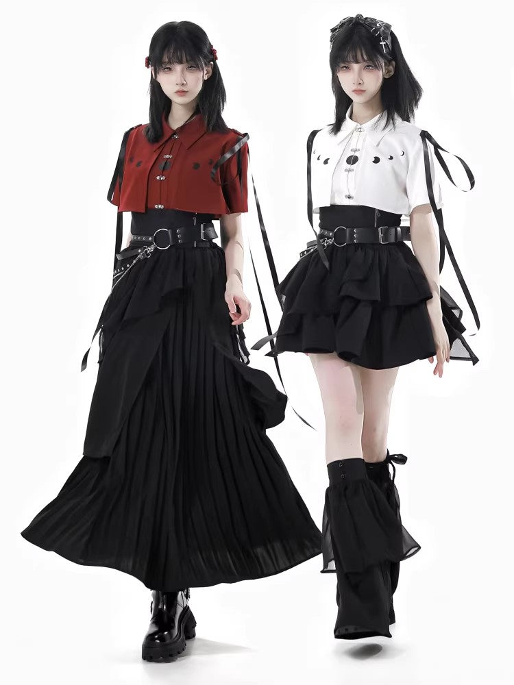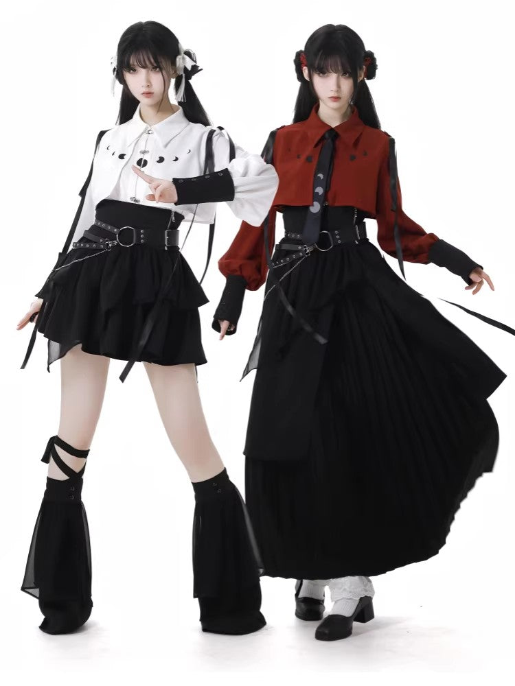 セット内容: ワンピース/スカート + 半袖ブラウス/長袖ブラウス + ウエストベルト + レッグスリーブ