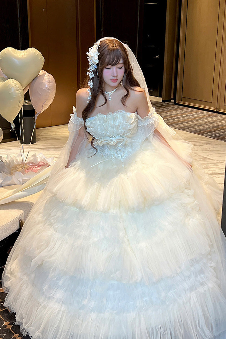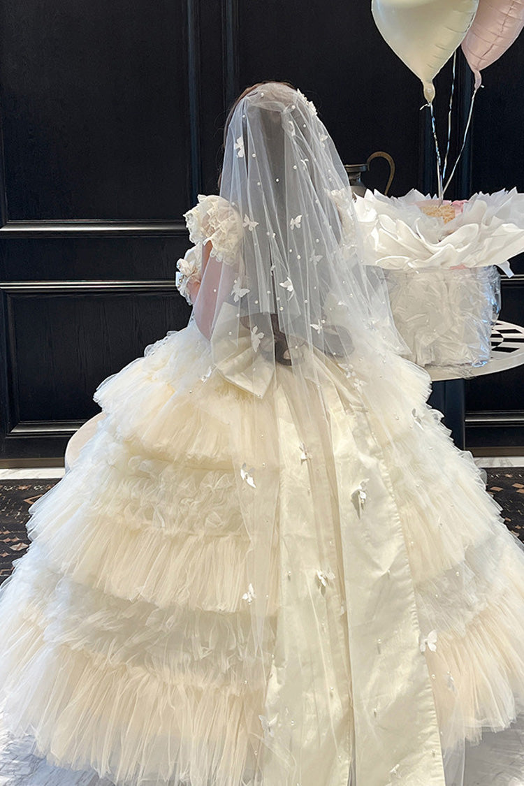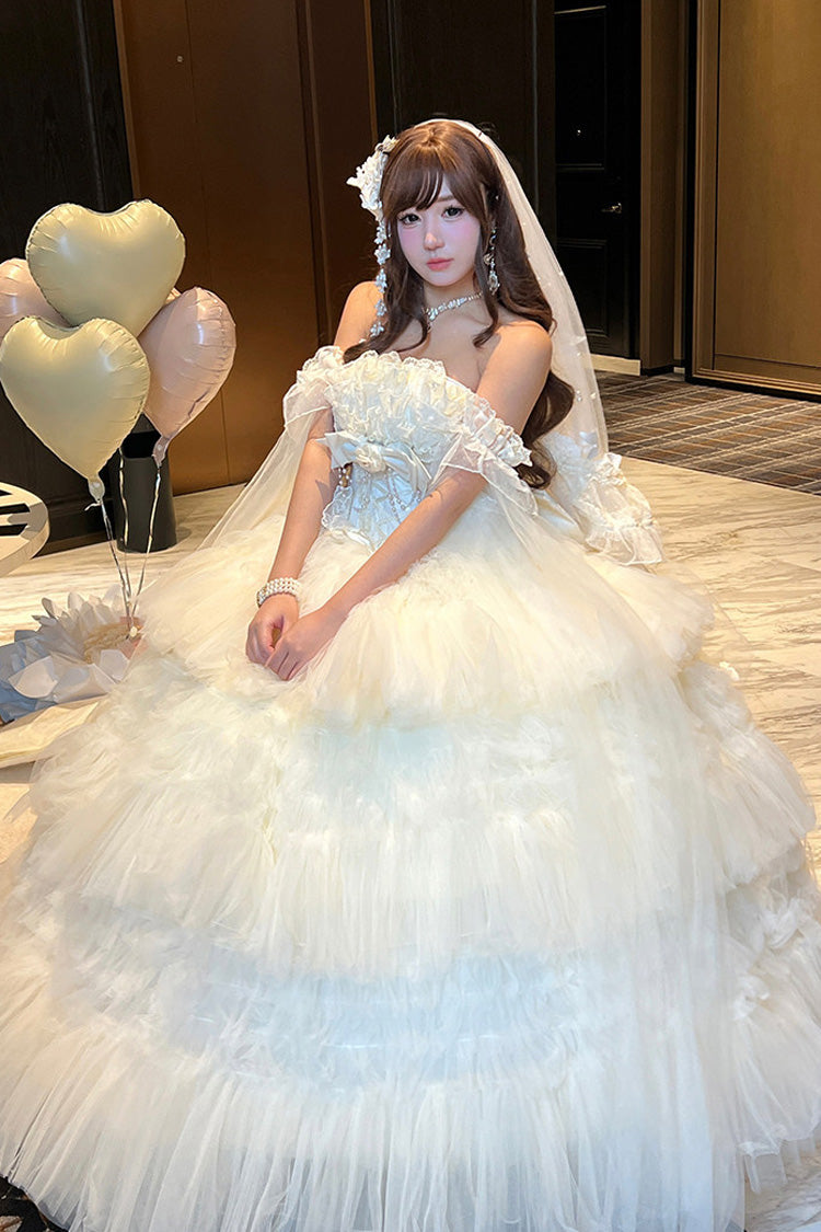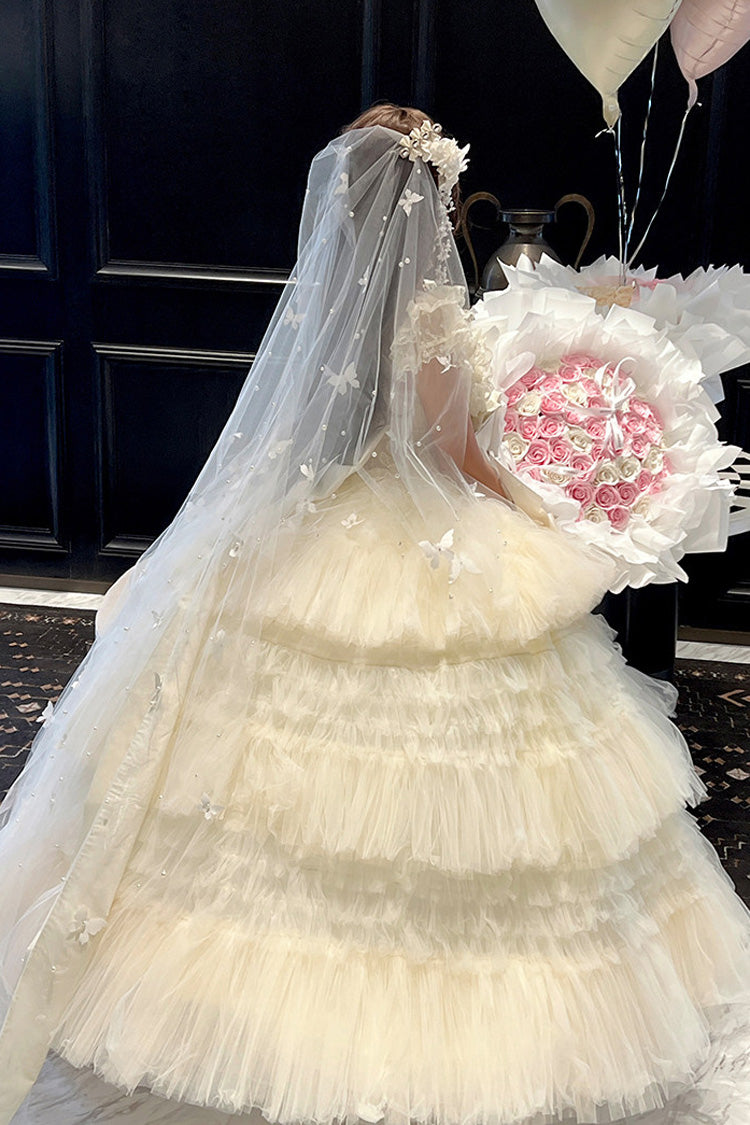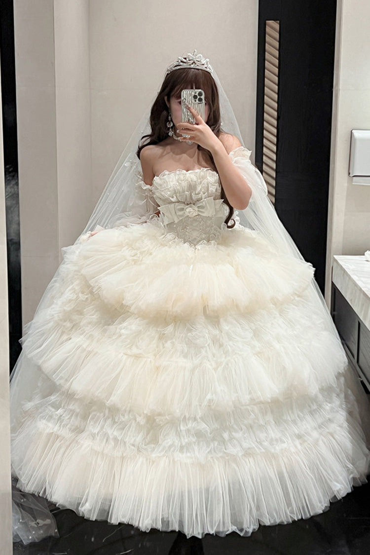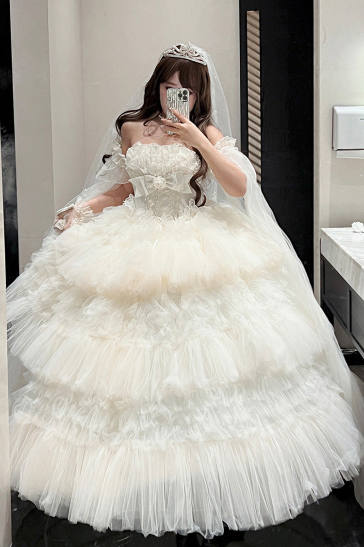 特徴: 三層、フリル、花嫁、リボン、レース
