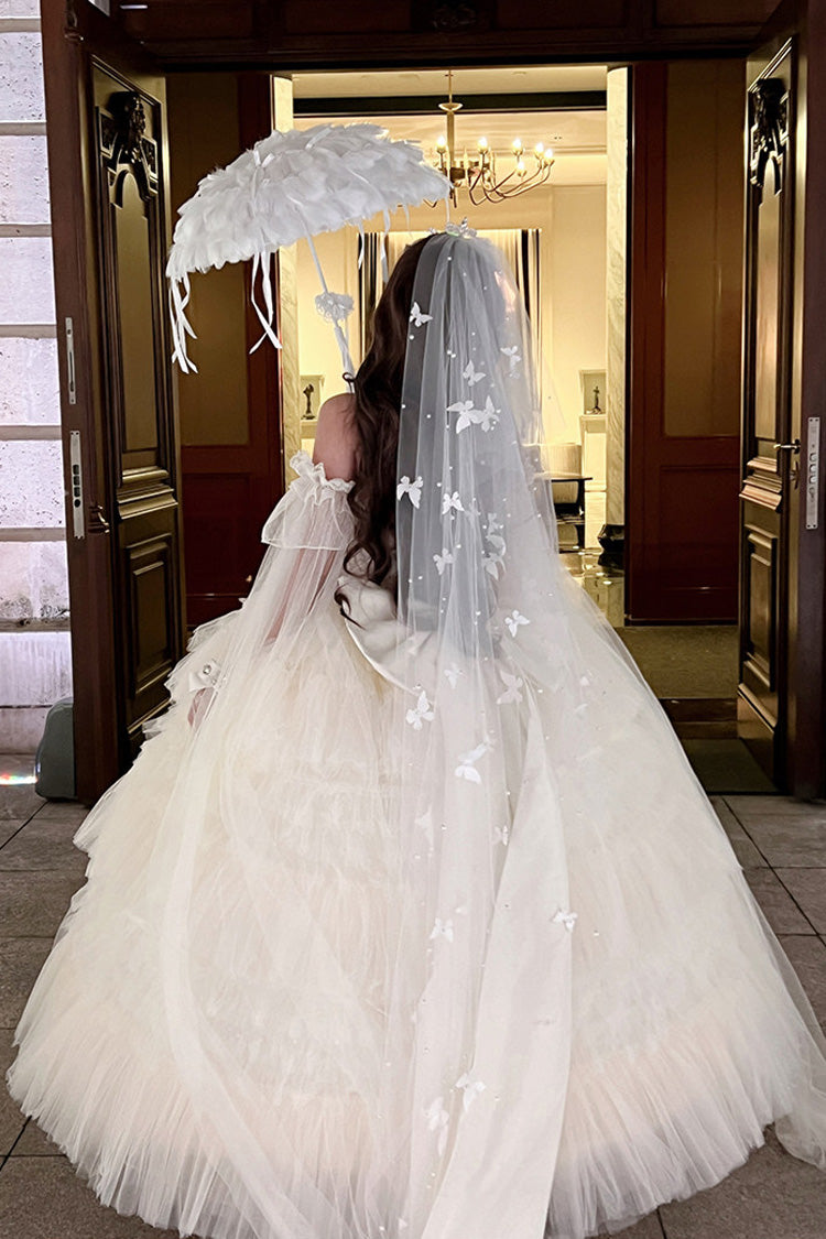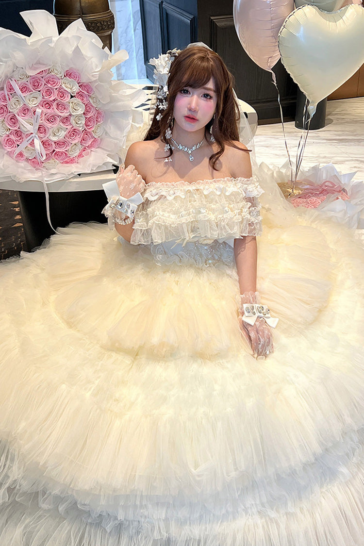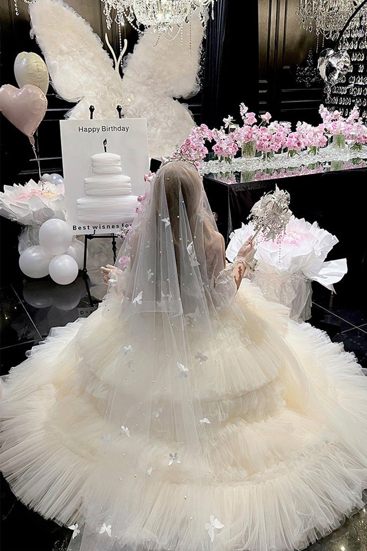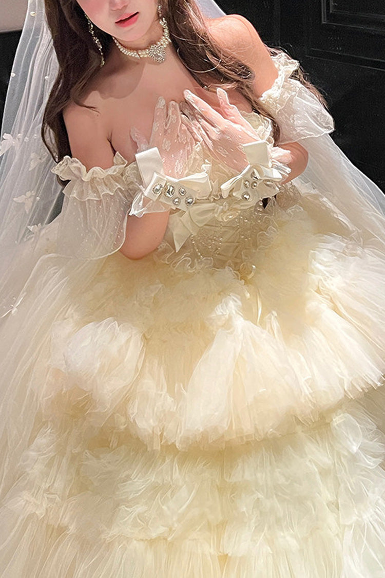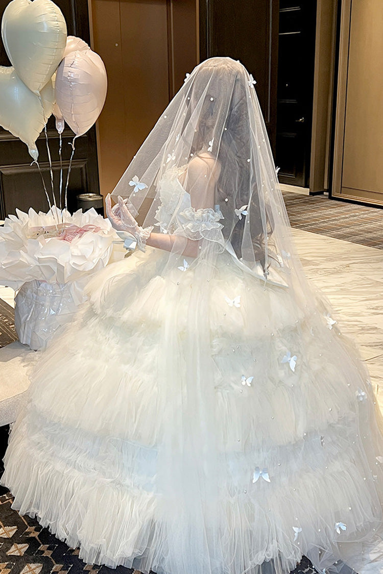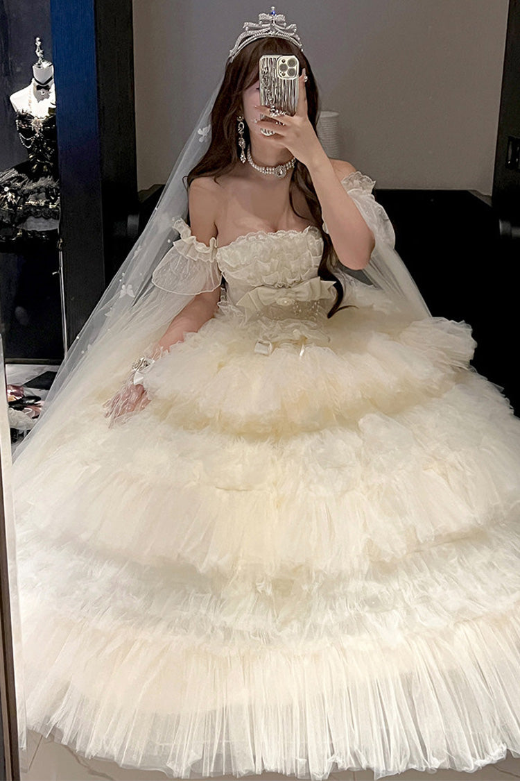 特徴: 三層、フリル、花嫁、リボン、レース