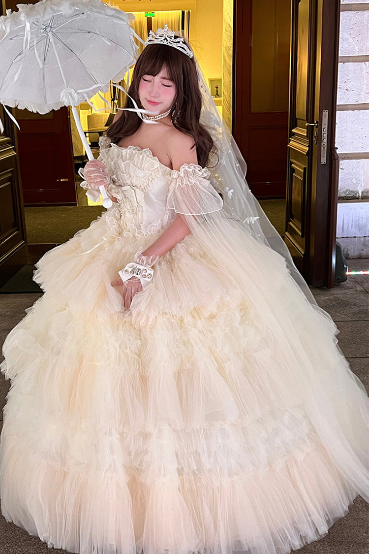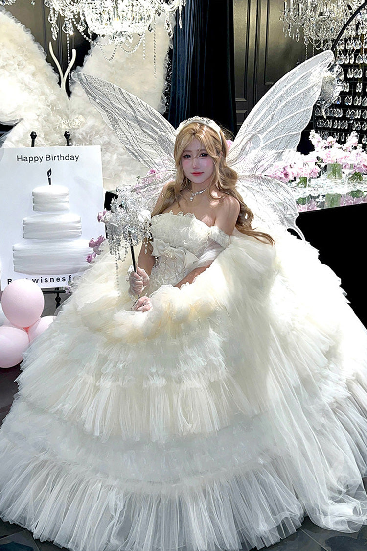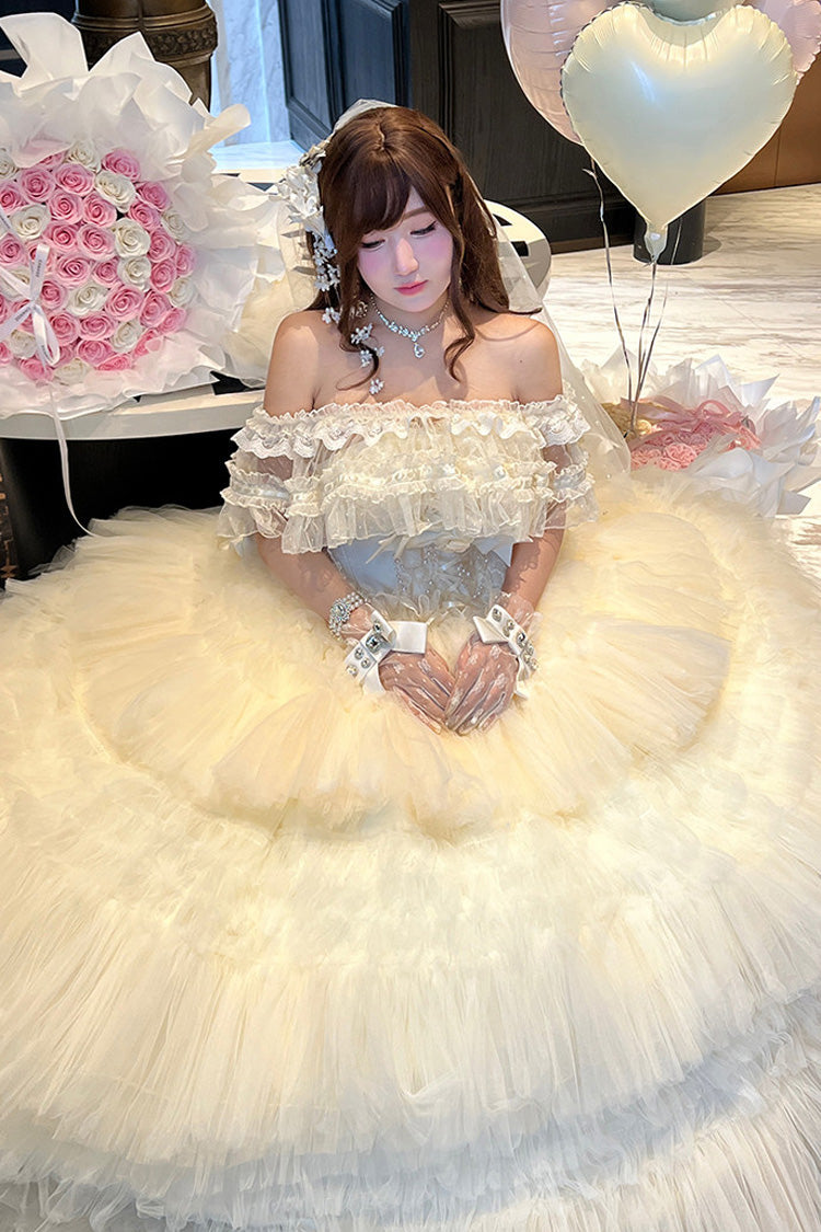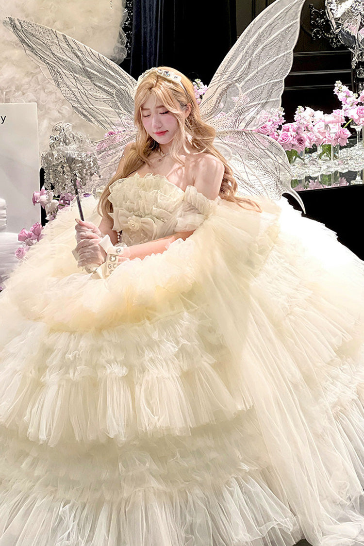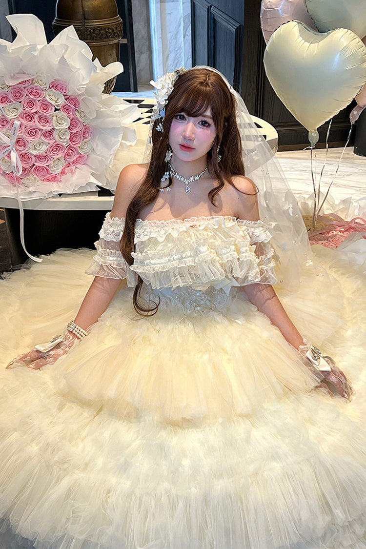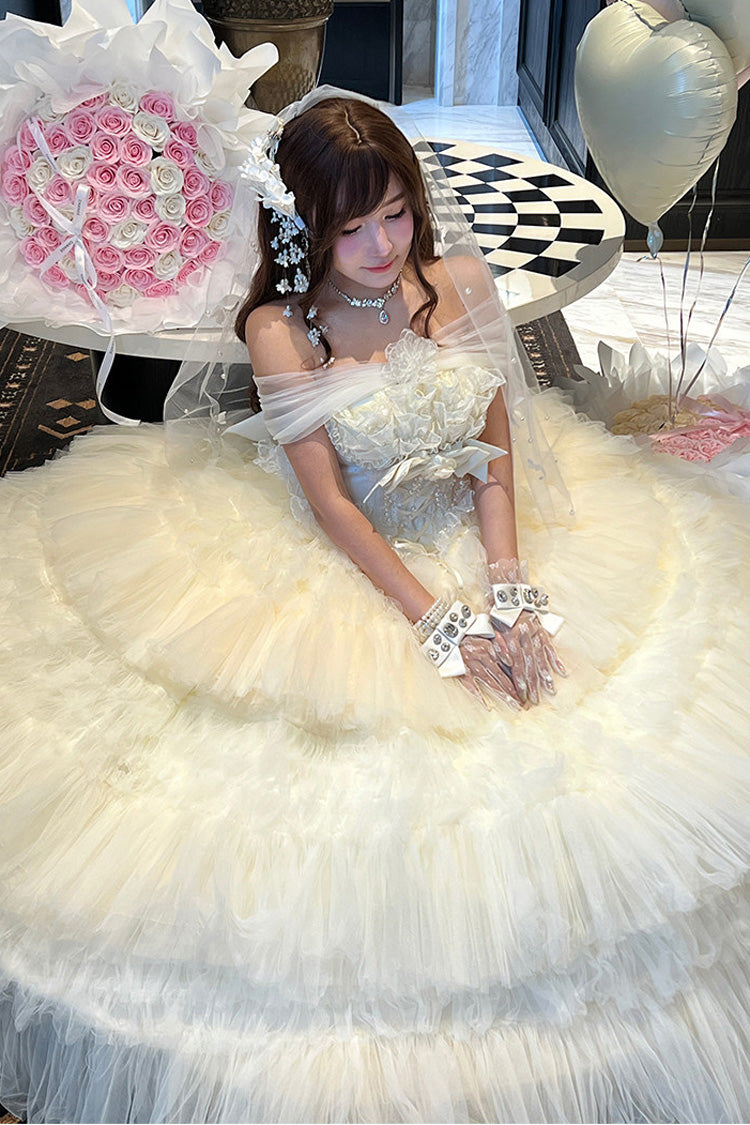 特徴: 三層、フリル、花嫁、リボン、レース