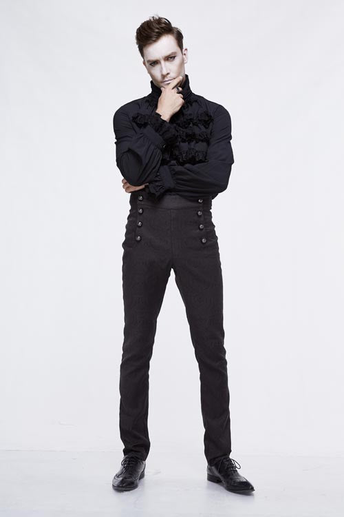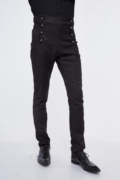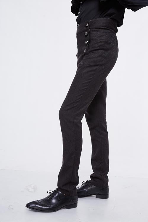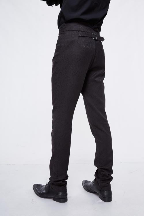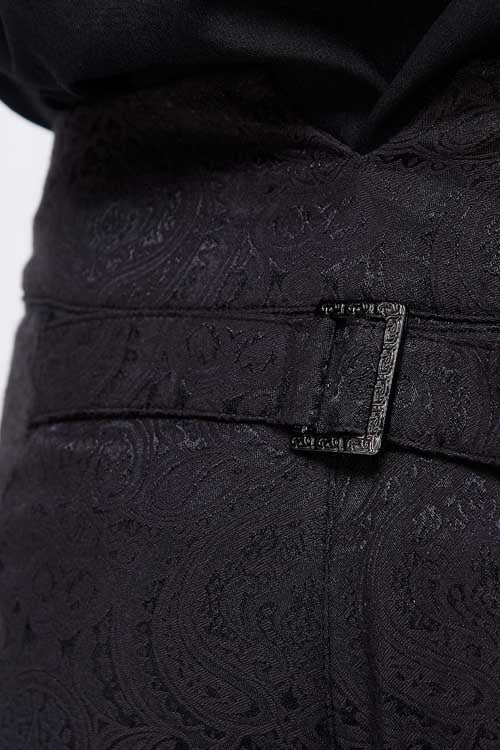 The whole piece western style pant is made of jacquard fabric, high waist design, front waist double breasted button can be opened, the back waist with decorative pattern buckle .Suitable for everyday or party wear.
