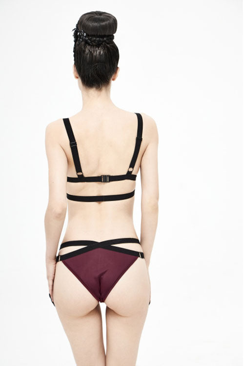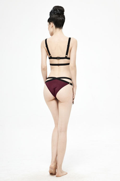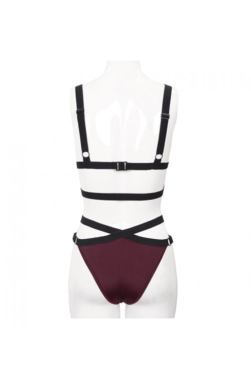 The main fabric is burgundy super-elastic swimsuit fabric with black Gothic lace. The strap is made of elastic elastic. The back buckle can be opened. All crafts and threads are dedicated to swimsuits to achieve greater elasticity and improve comfort.