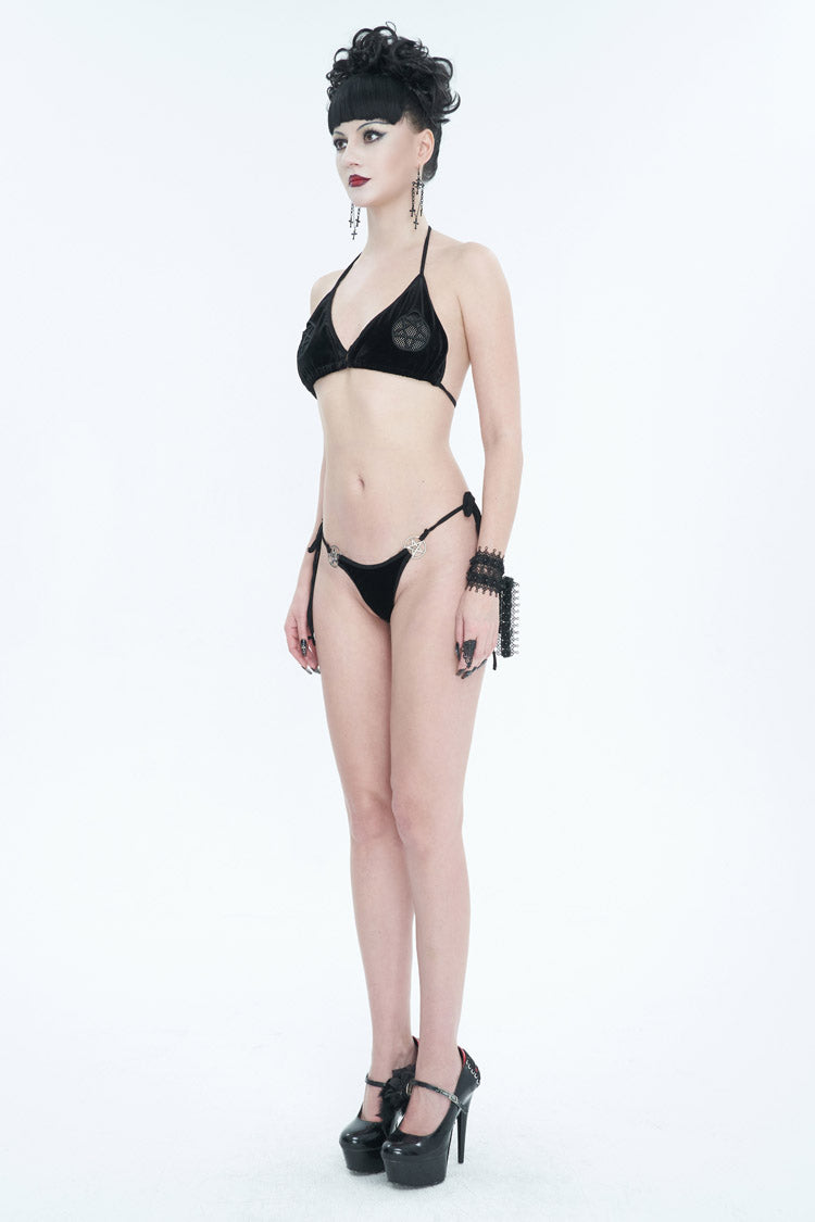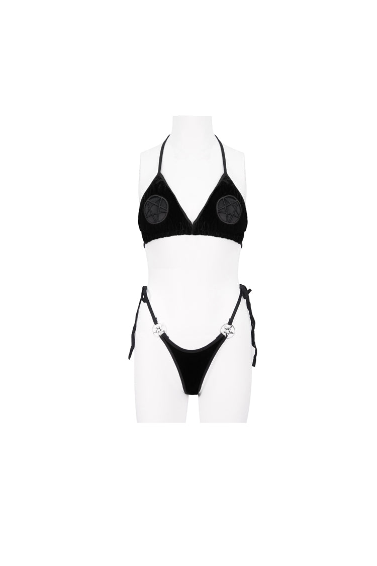 3. The panty rope is elastic and decorated with metal pentagrams.
