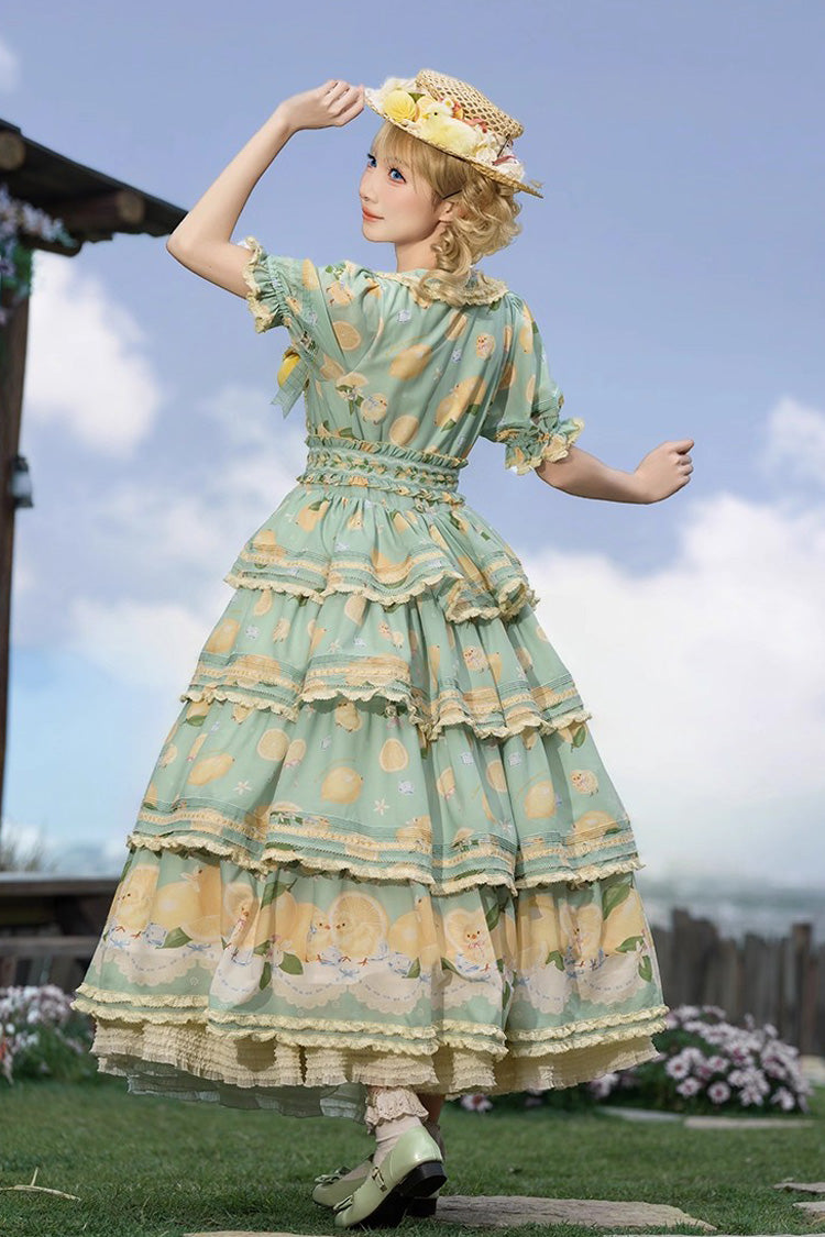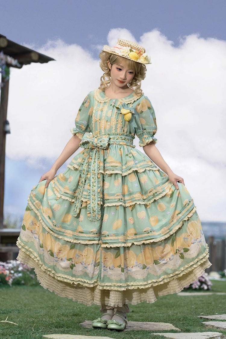 Feature: Triple-Layered, Print, Ruffle, Bowknot, Lace