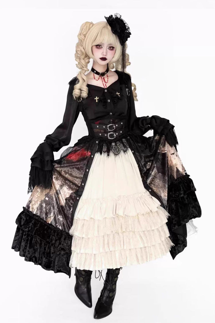 Feature: Multi-Layered, Printed, Ruffled, Open-Front