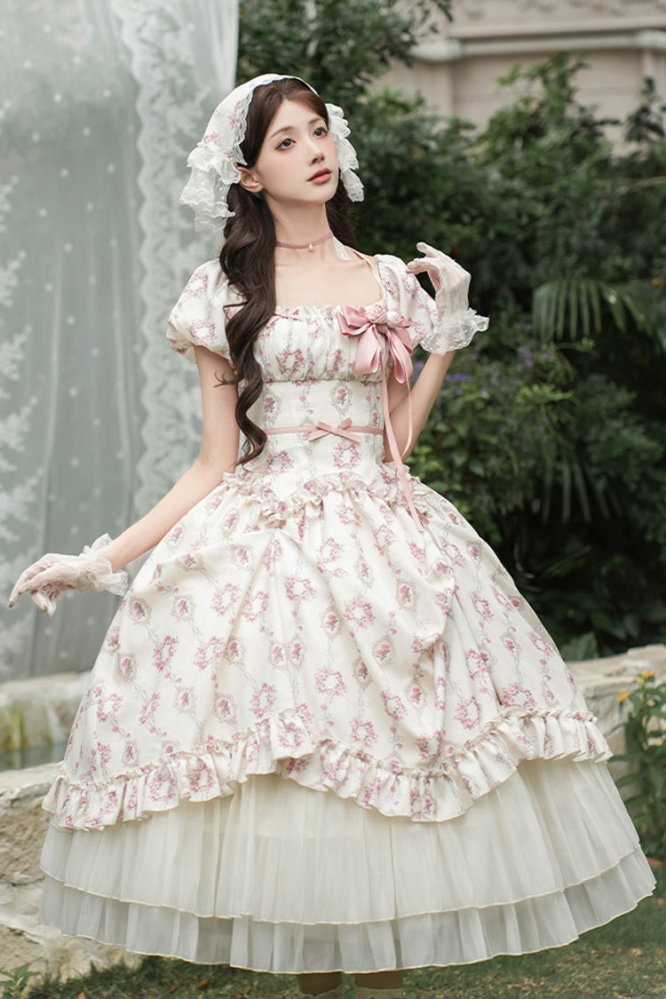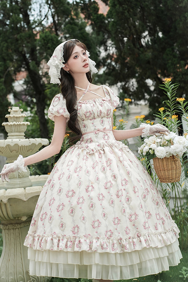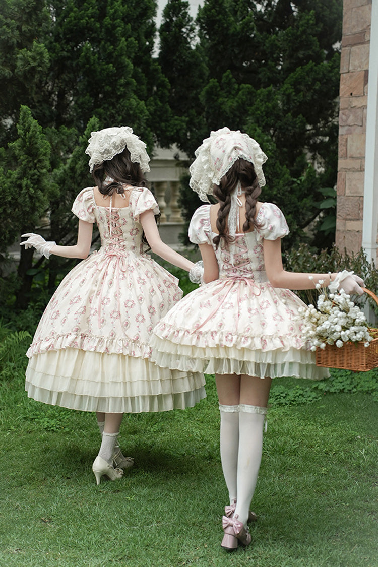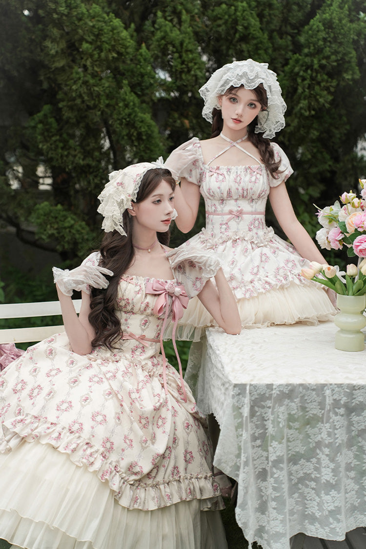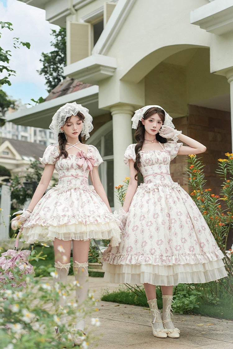 Feature: Triple-Layered, Print, Ruffle, Bowknot, Lace-Up