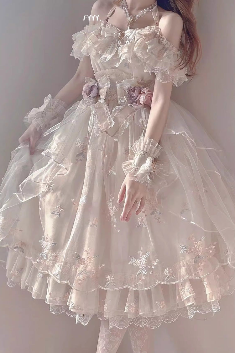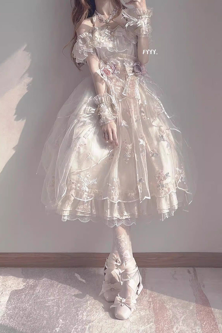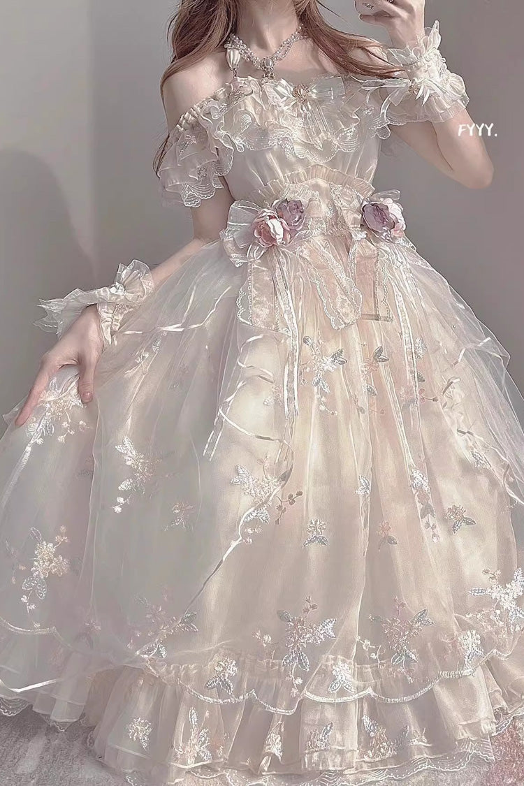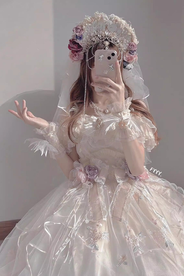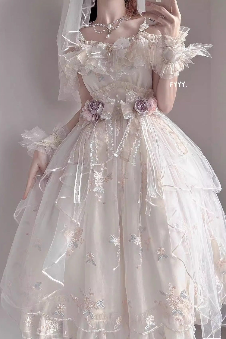 Include: Dress + Pearl Shoulder Strap + Chest Bowknot + Waist Flower + Necklace