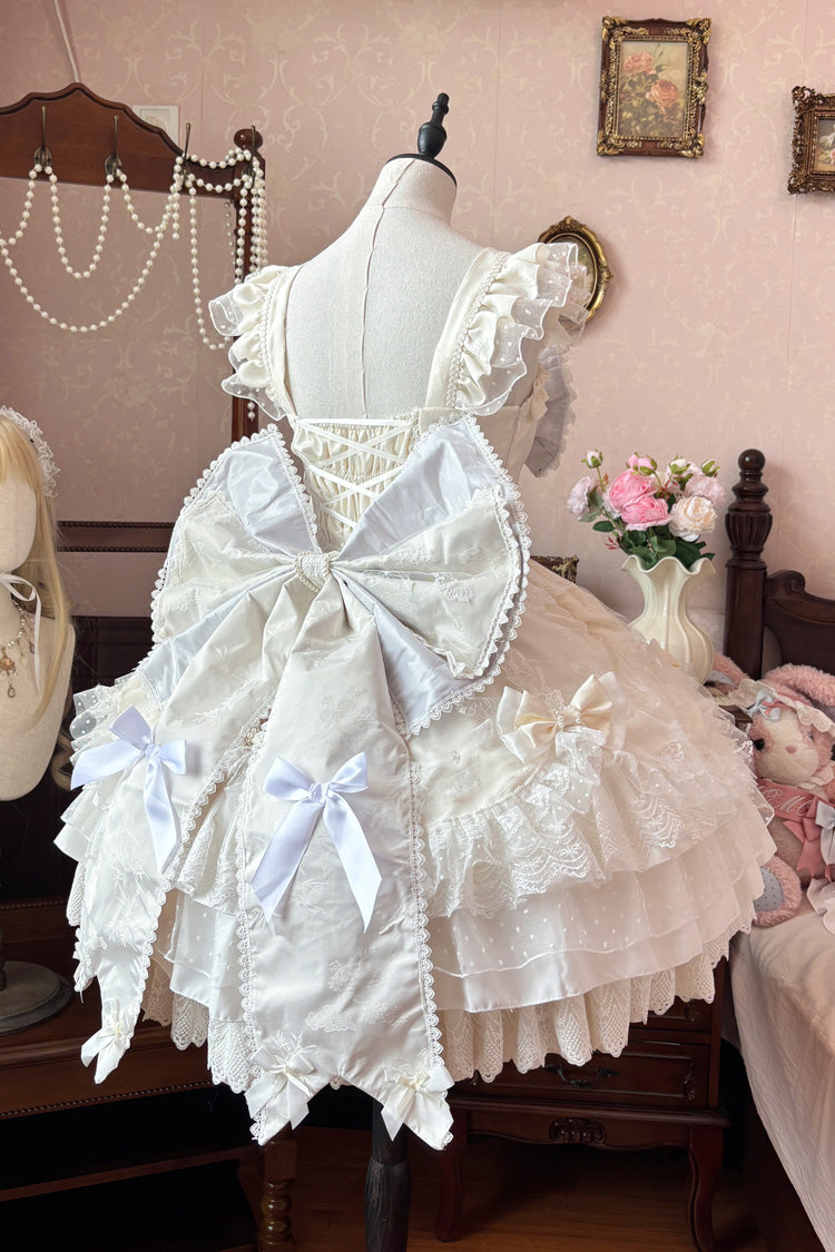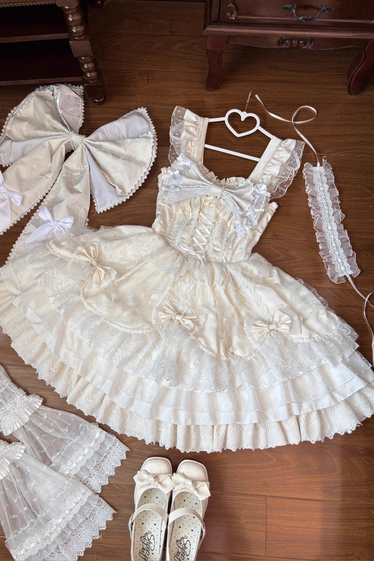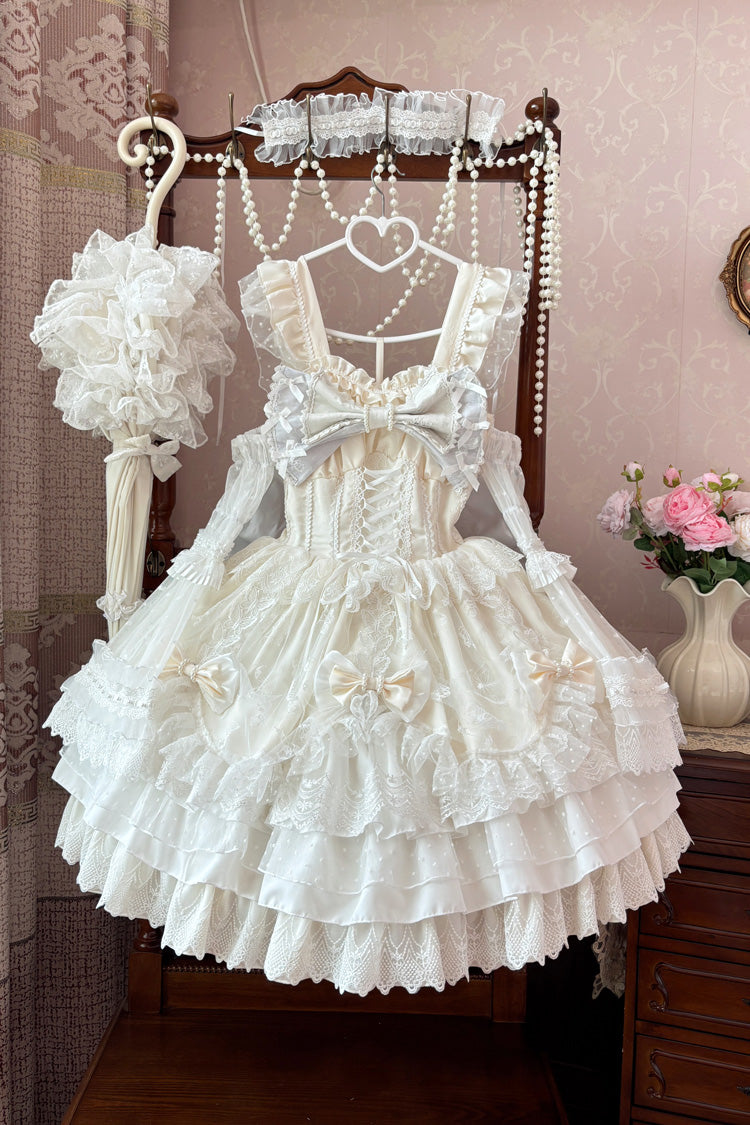 Feature: Triple-Layered, Ruffle, Embroidery, Bowknot, Lace-Up, Pearl