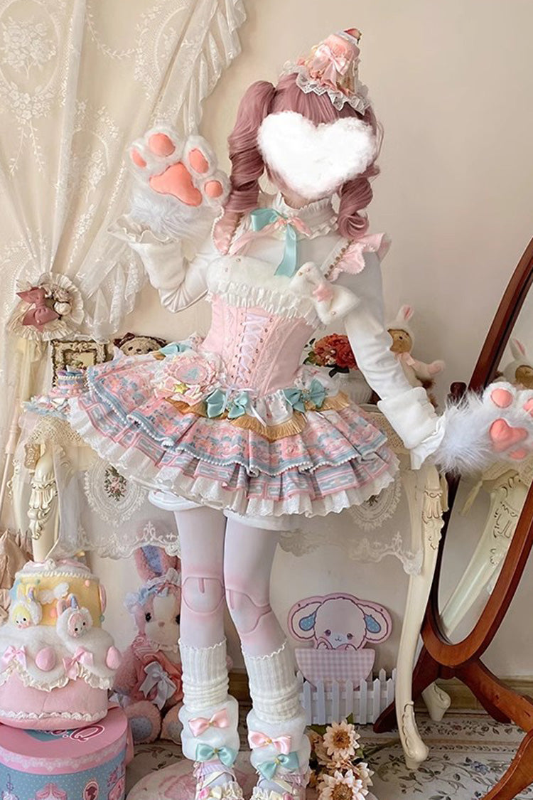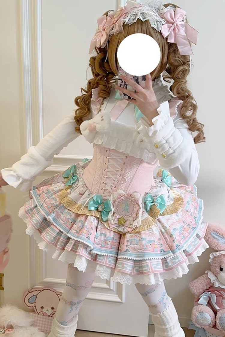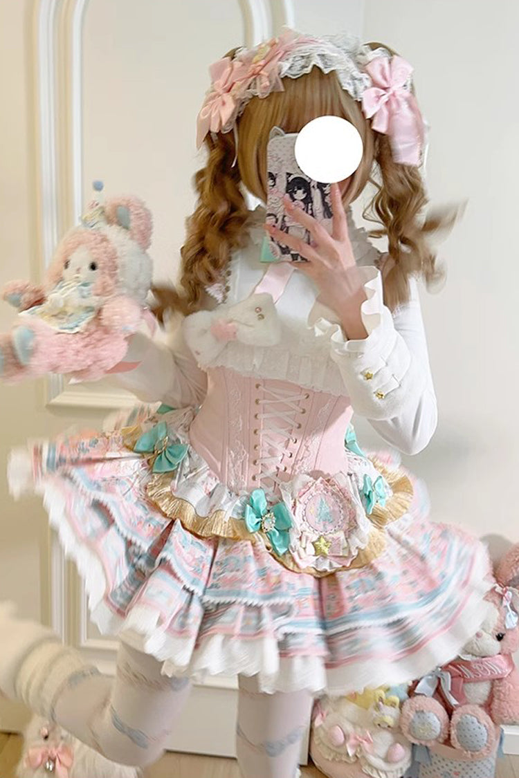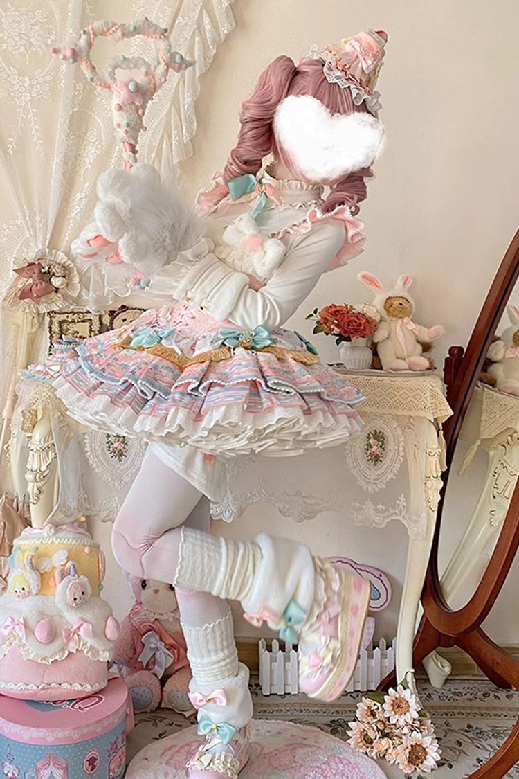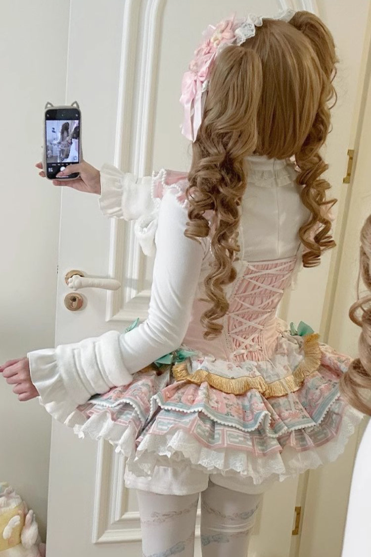 Feature: Multi-Layered, Print, Ruffle, Bowknot, Lace-Up