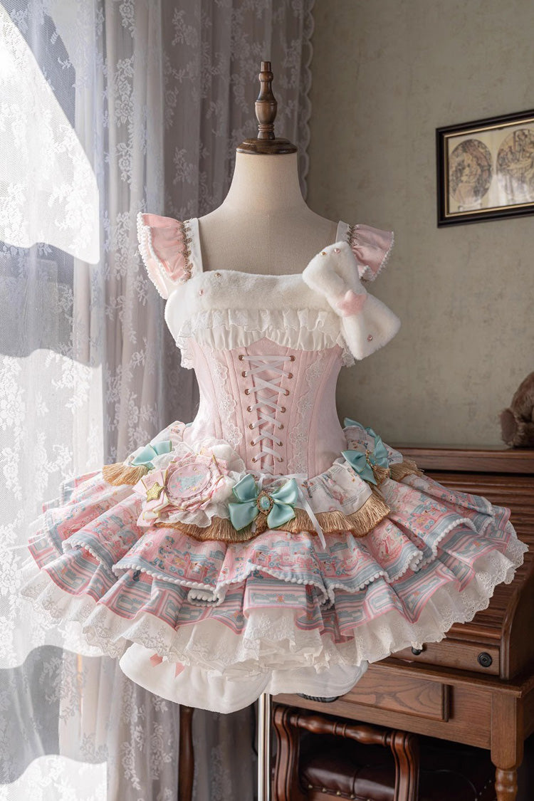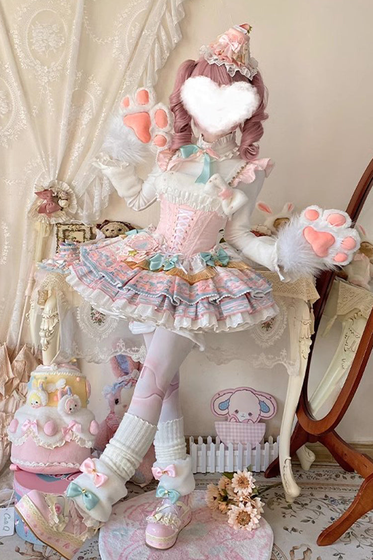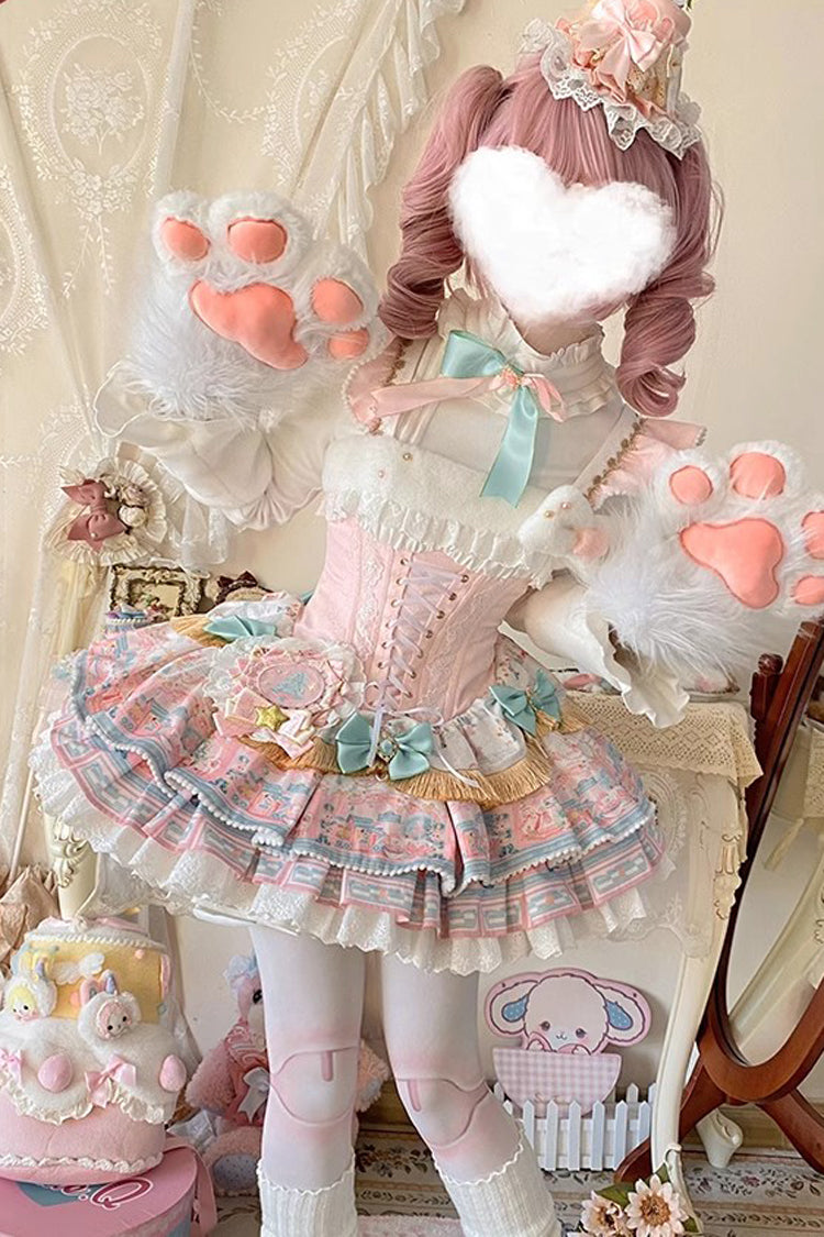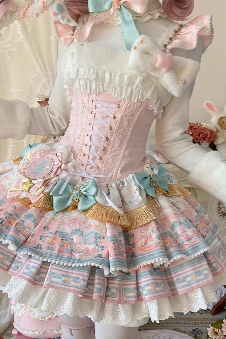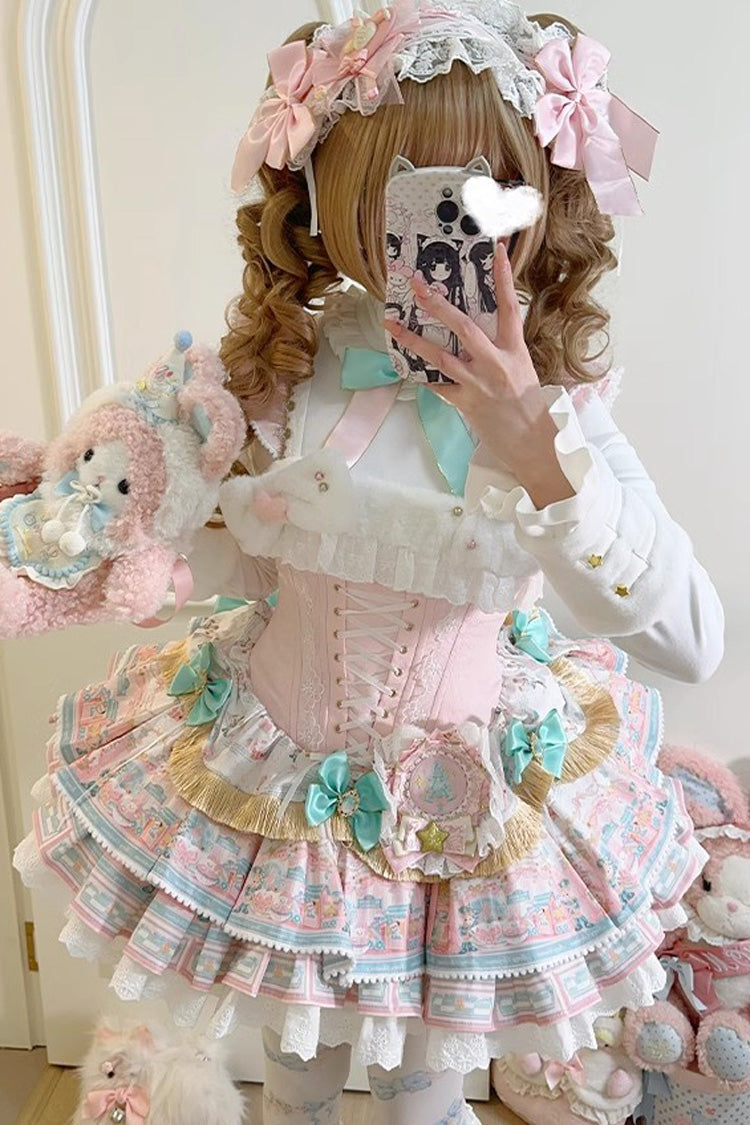 Feature: Multi-Layered, Print, Ruffle, Bowknot, Lace-Up