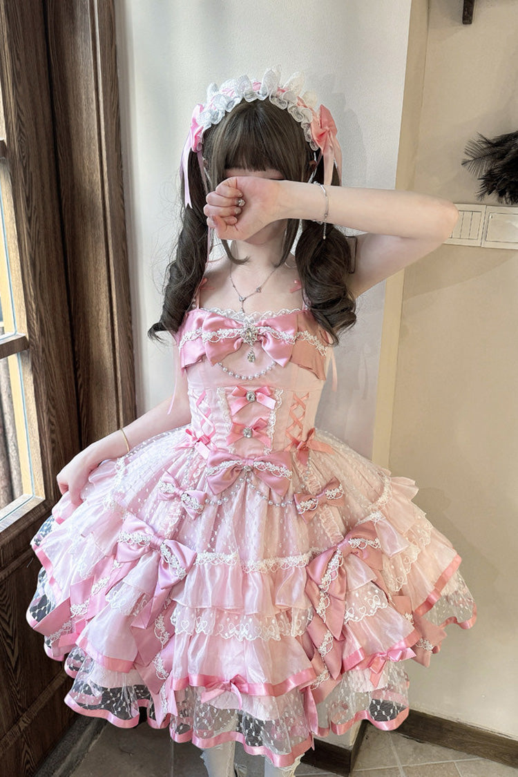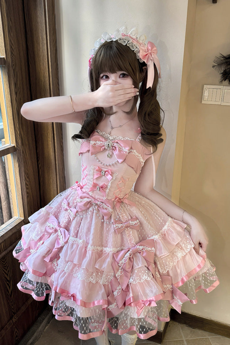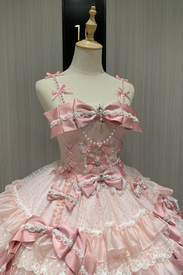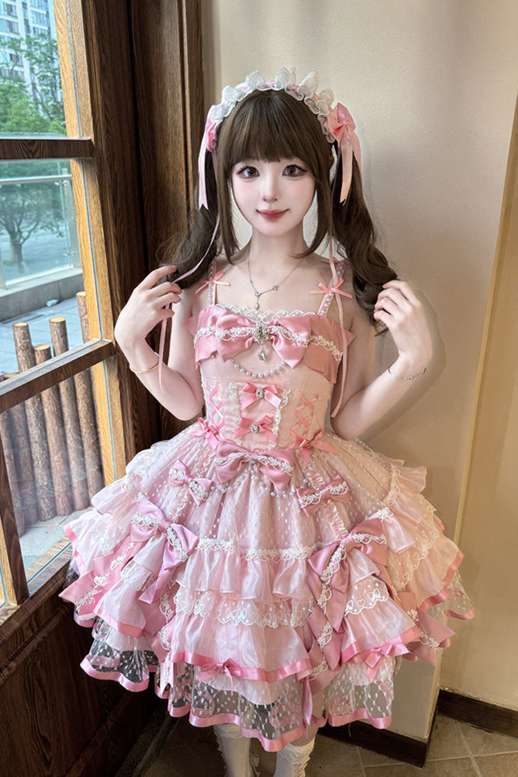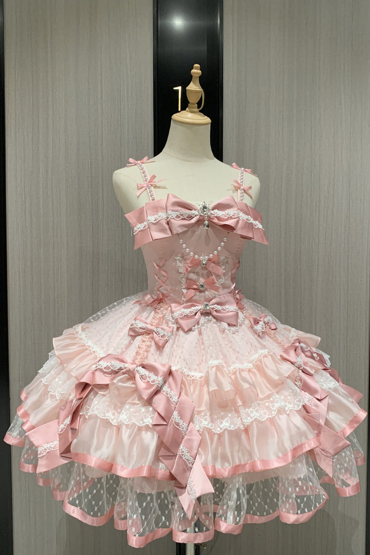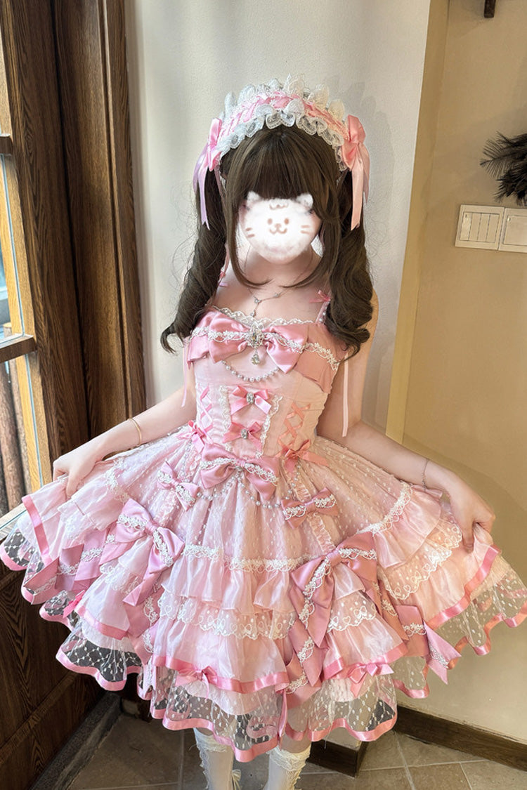 Feature: Triple-Layered, Ruffled, Bow, Lace, Pearl-Decorated