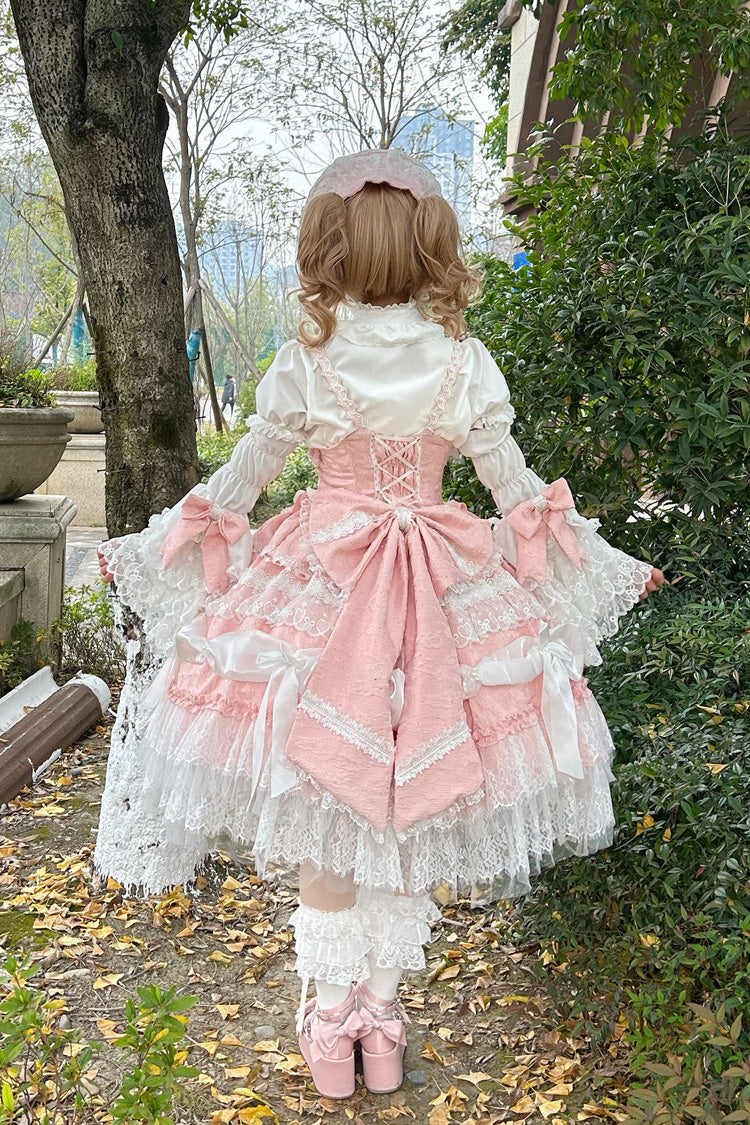 Include: Dress + Headband + Chest Bow + Hat + Sleeve Bow (2 Pieces) + Sleeves + Two Pieces + Train + Waist Bow