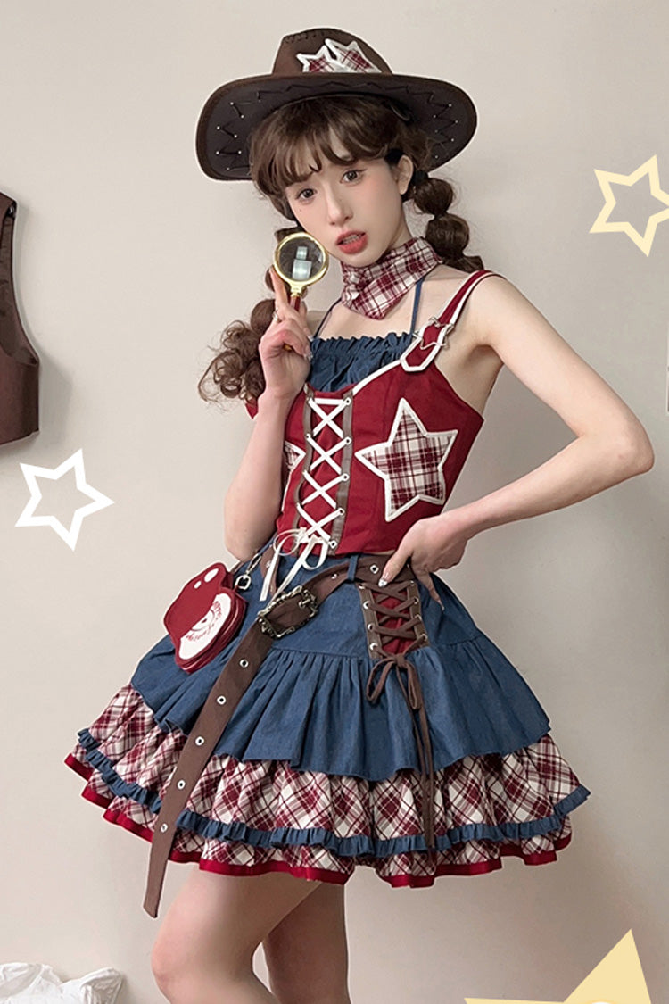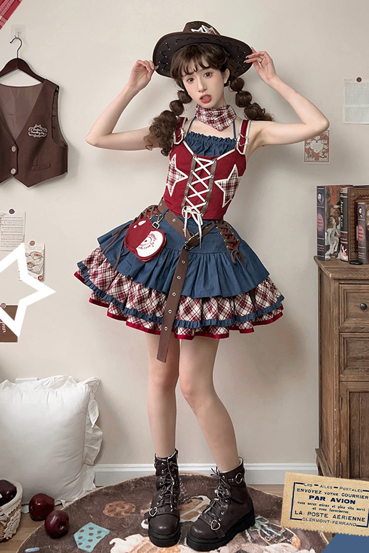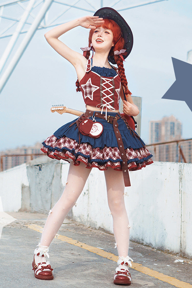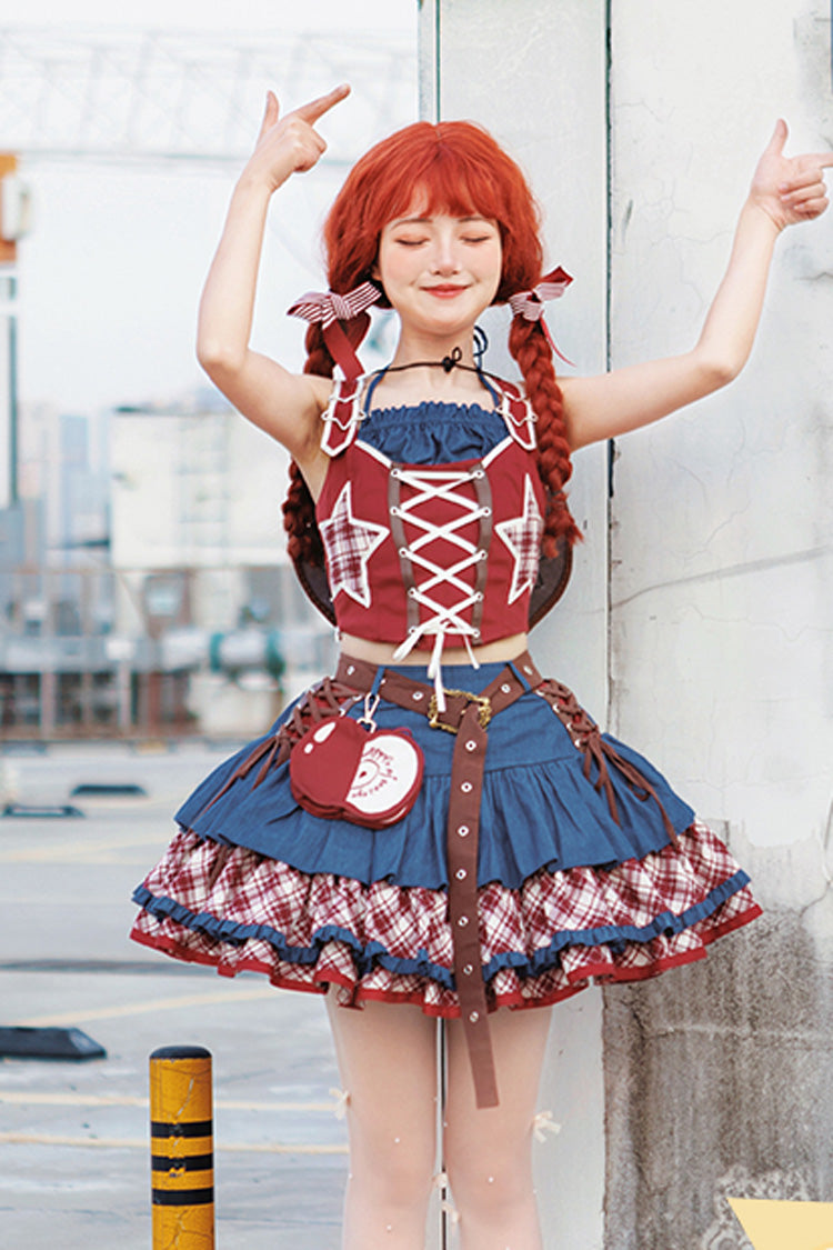 Feature: Triple-Layered, Print, Ruffle, Lace-Up