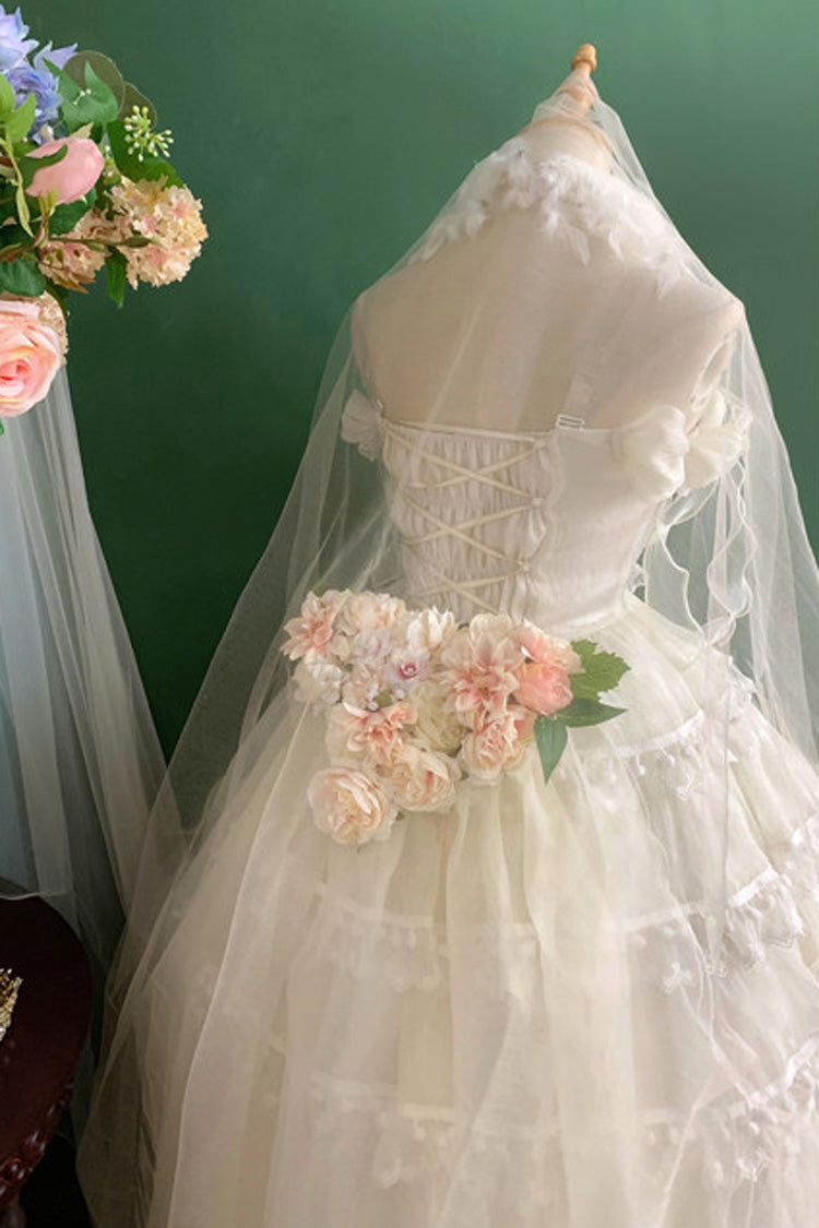 Include: Dress + Train + Floral Cluster + Necklace + Gloves + Veil + Crown